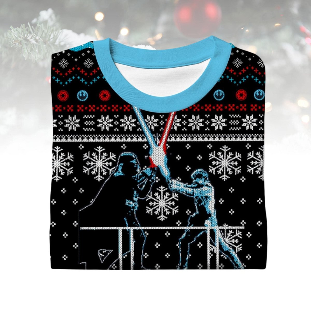 Star Wars Lightsaber Duel Ugly Christmas Sweater Retro Darth Vader vs Luke Skywalker Holiday Knit Jumper