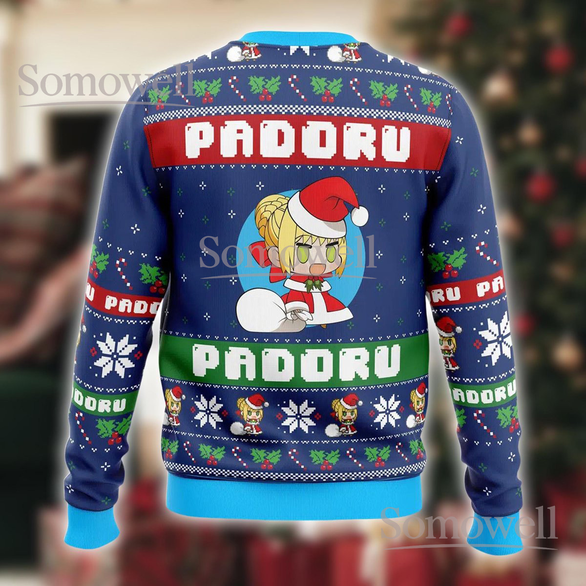 Padoru Blue Christmas Ugly Sweater Holiday Knit Jumper Anime Meme Design For Fans