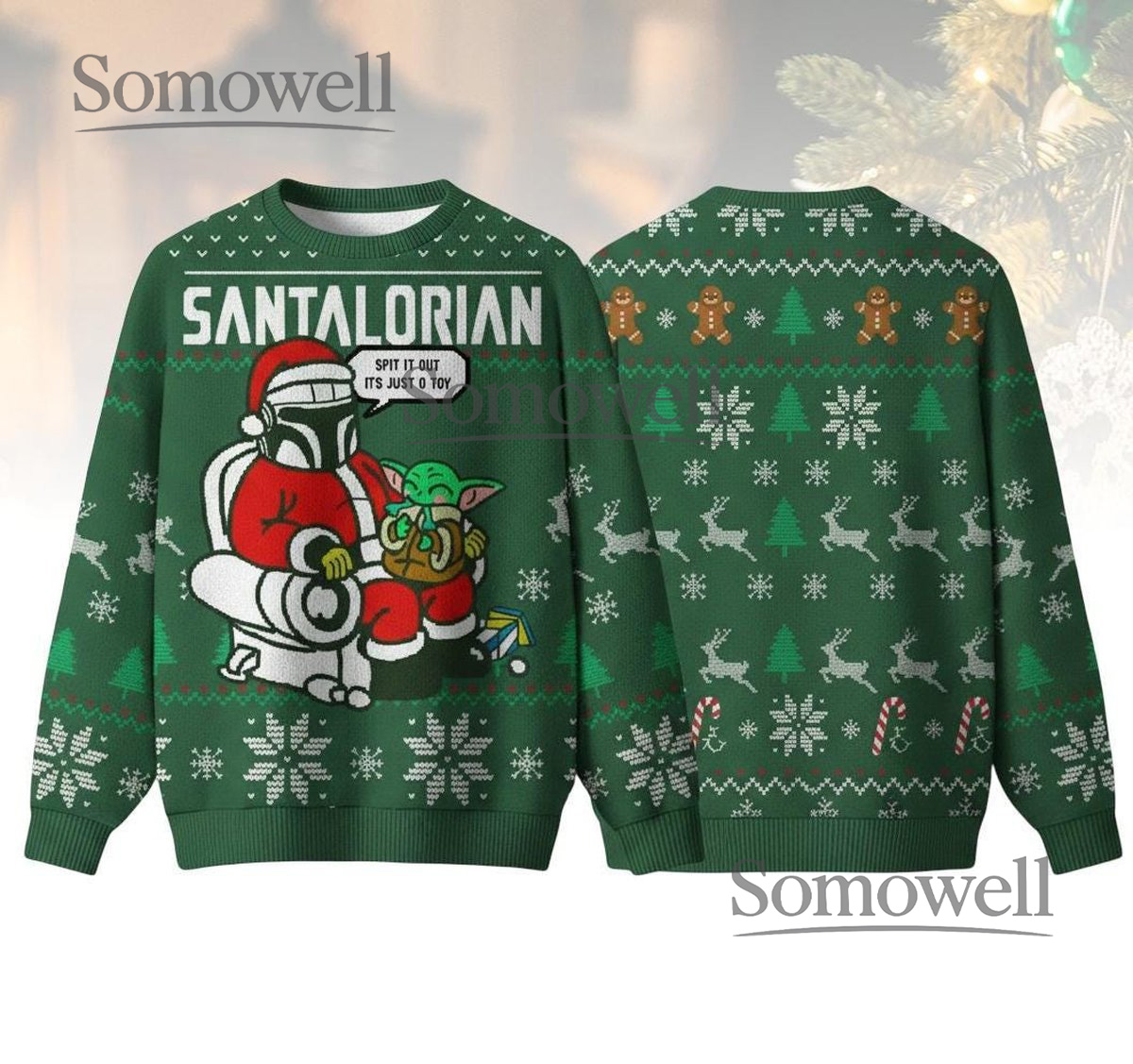 Santalorian Funny Star Wars Christmas Sweater Mandalorian Style