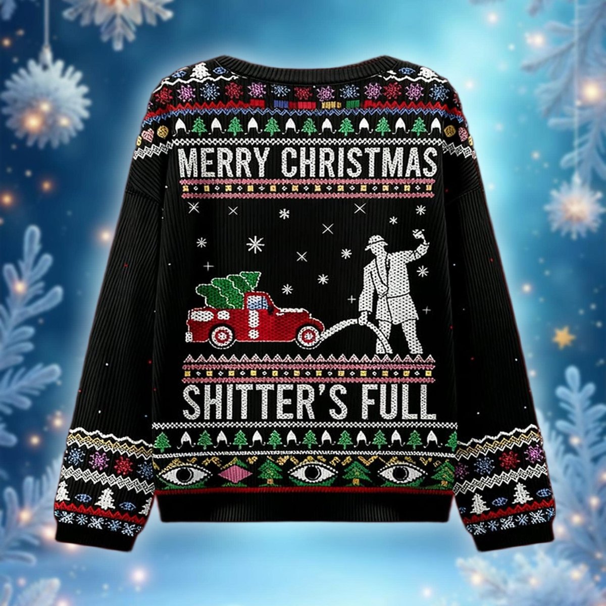Shitter Was Full Christmas Blue Ugly Sweater Funny Winter Holiday Scene Knit Jumper
