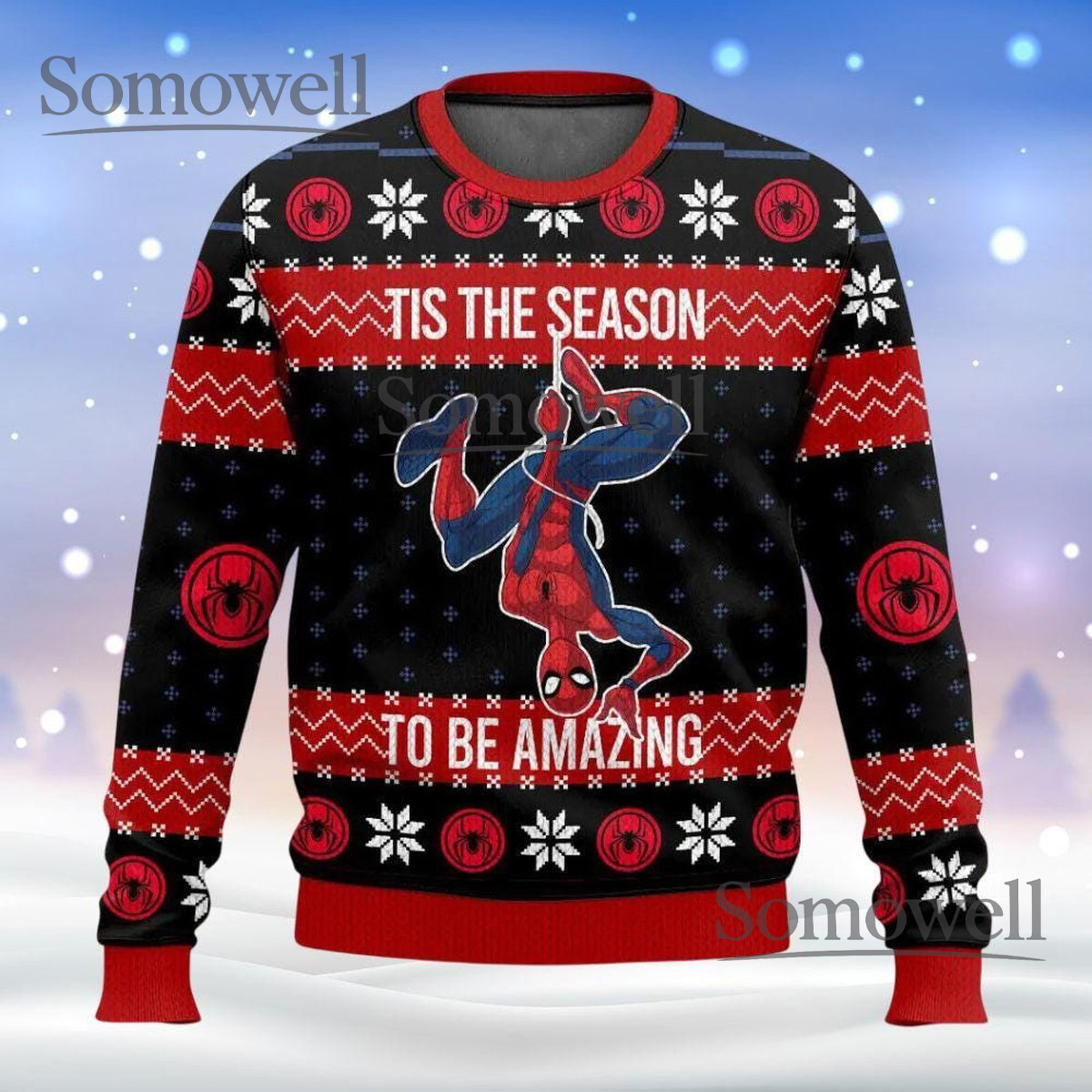 Spider Man Black Red Amazing Ugly Christmas Sweater Funny Hero Holiday Knit