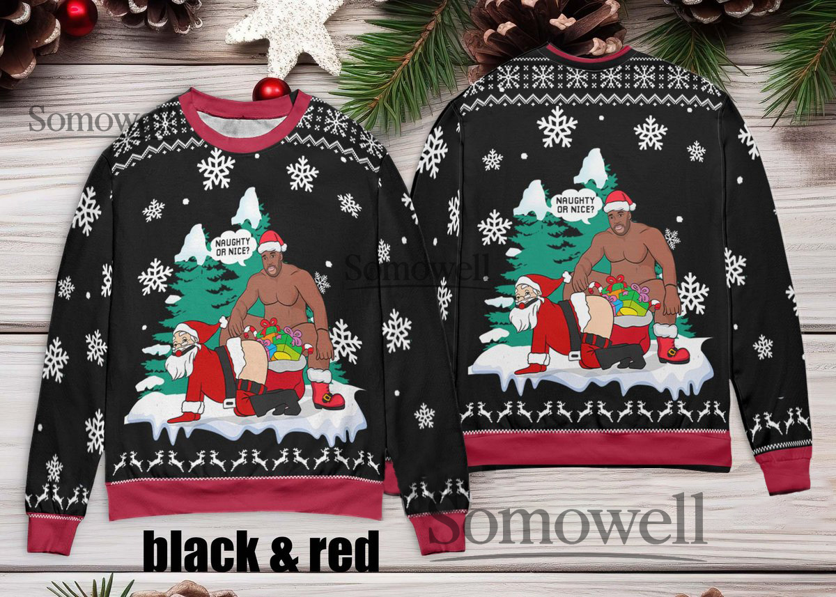 Naughty or Nice Barry Wood Santa Funny Ugly Christmas Sweater Meme Humor Holiday Edition Multi Color Edition