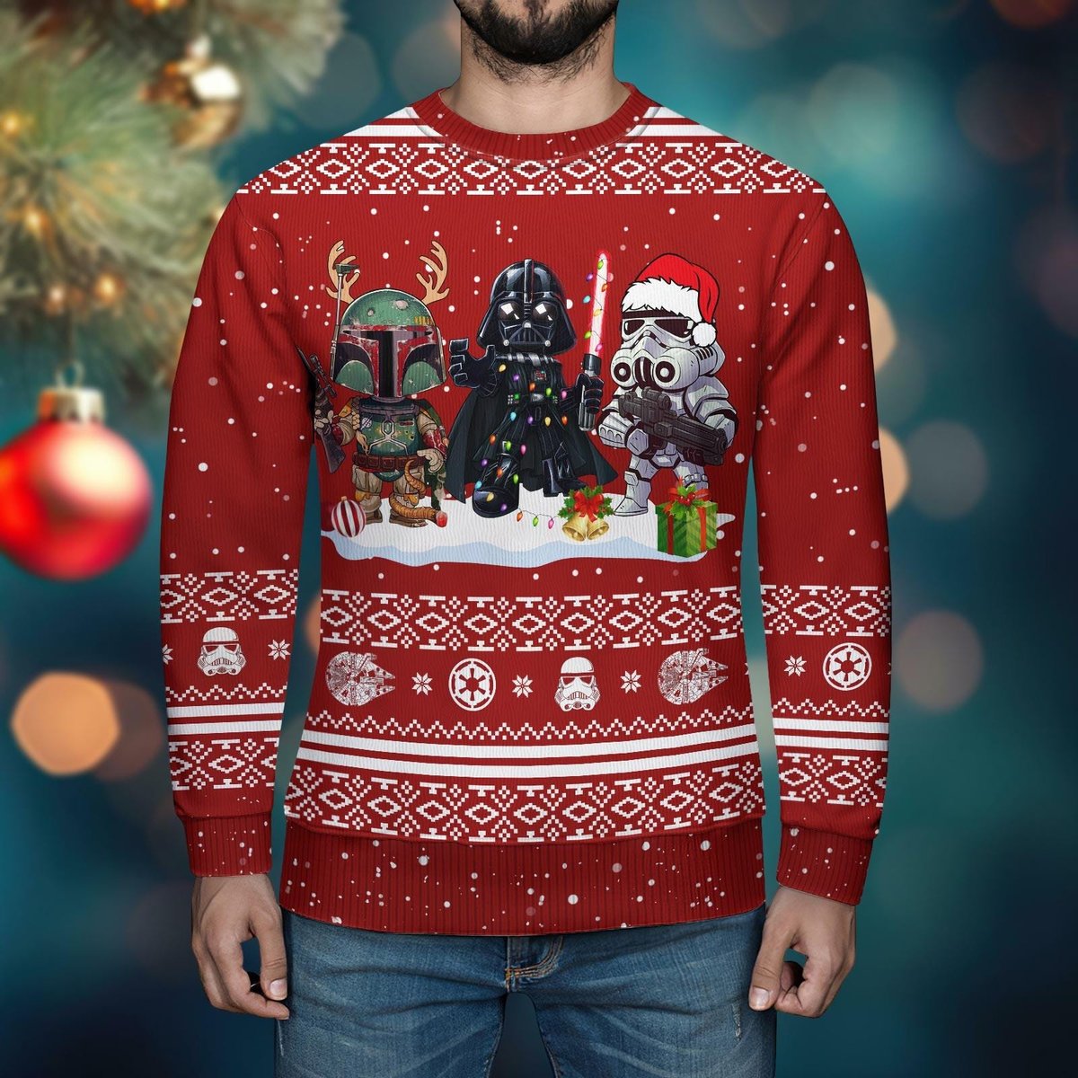 Star Wars Chibi Characters Ugly Christmas Sweater Funny Red Holiday