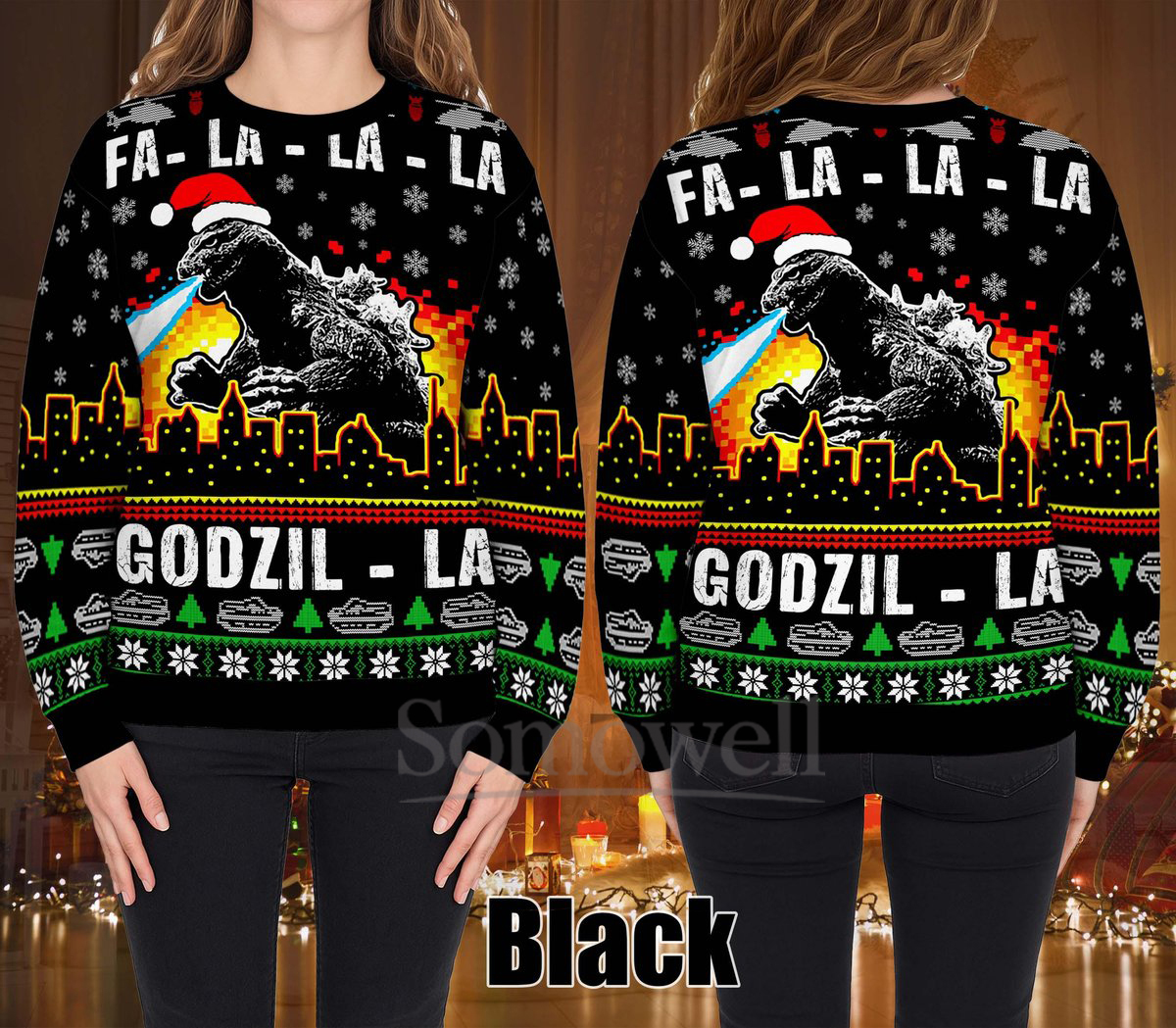 Godzilla La Ugly Christmas Sweater Funny Movie Monster Black Holiday Knit Jumper Gift