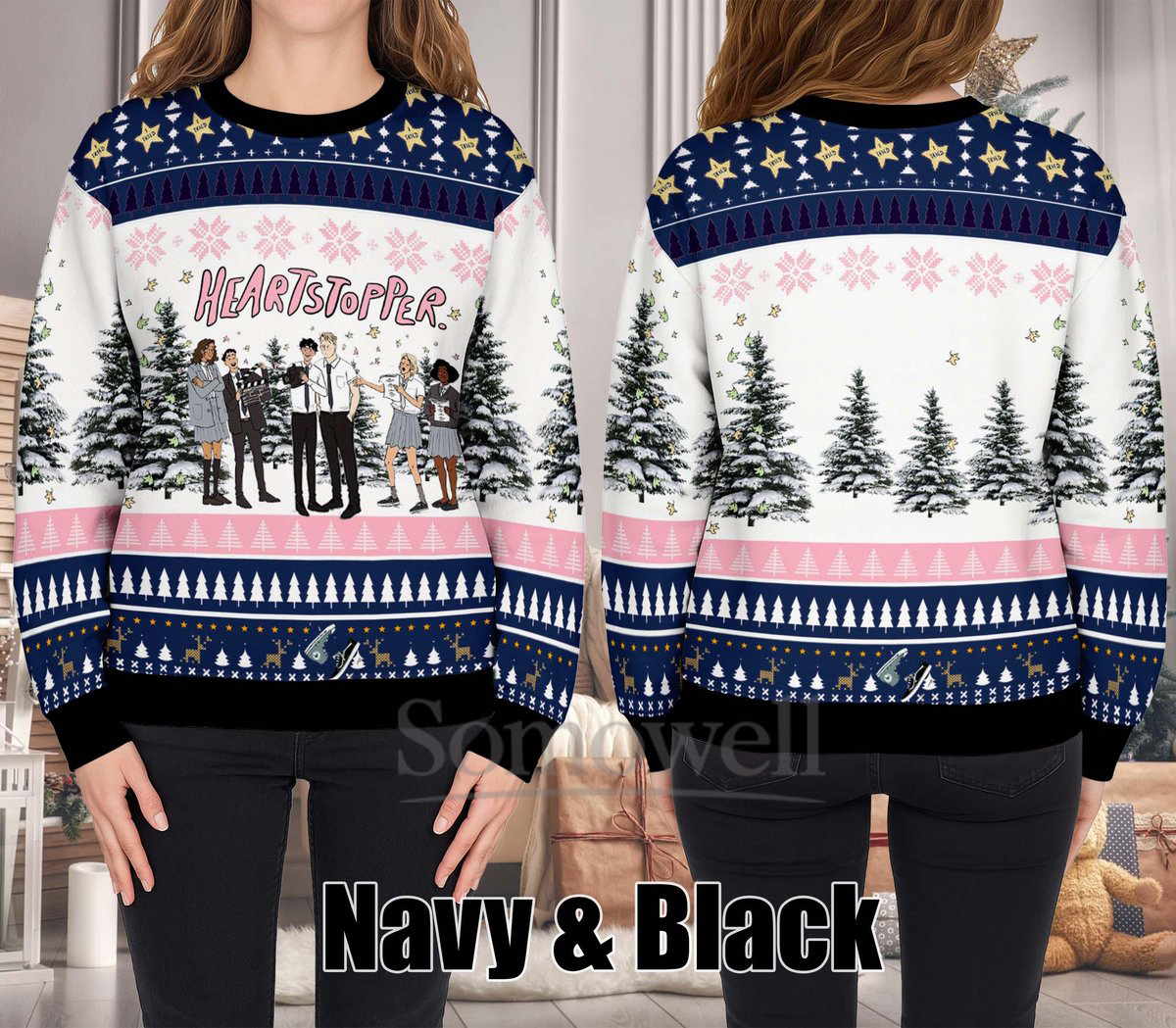 Heartstopper Ugly Christmas Sweater Cute TV Show Winter Black Holiday Knit Jumper Gift