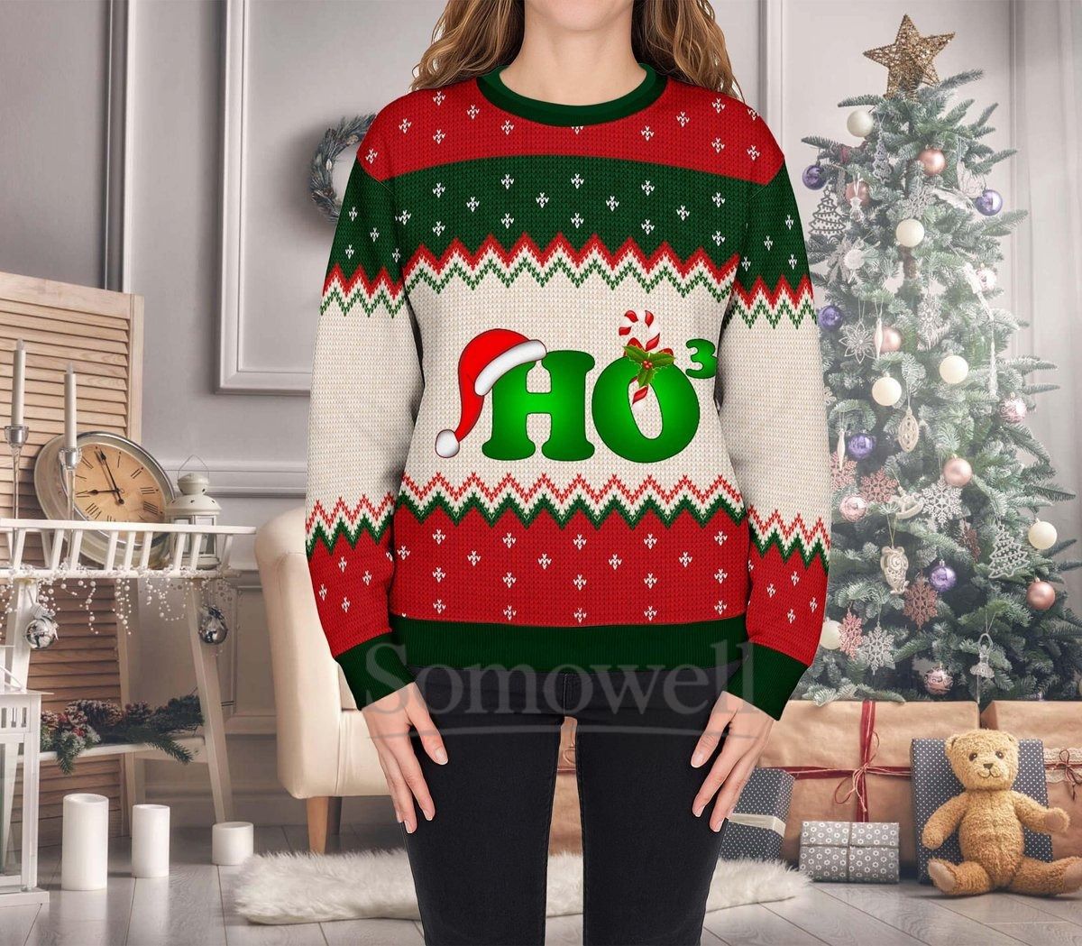 Ho Ho Ho Ugly Christmas Sweater Funny Math Santa Red Green Holiday Knit Jumper Gift