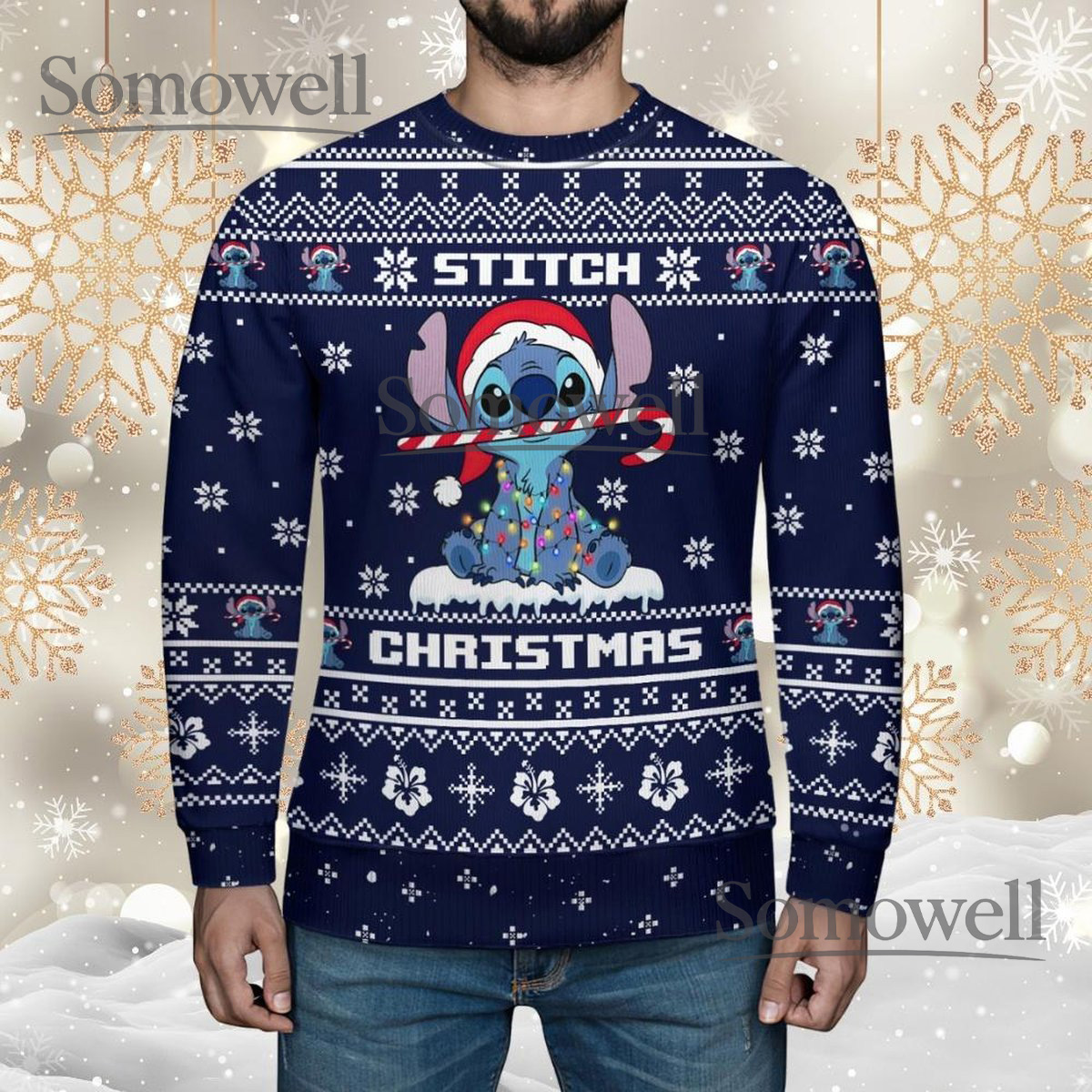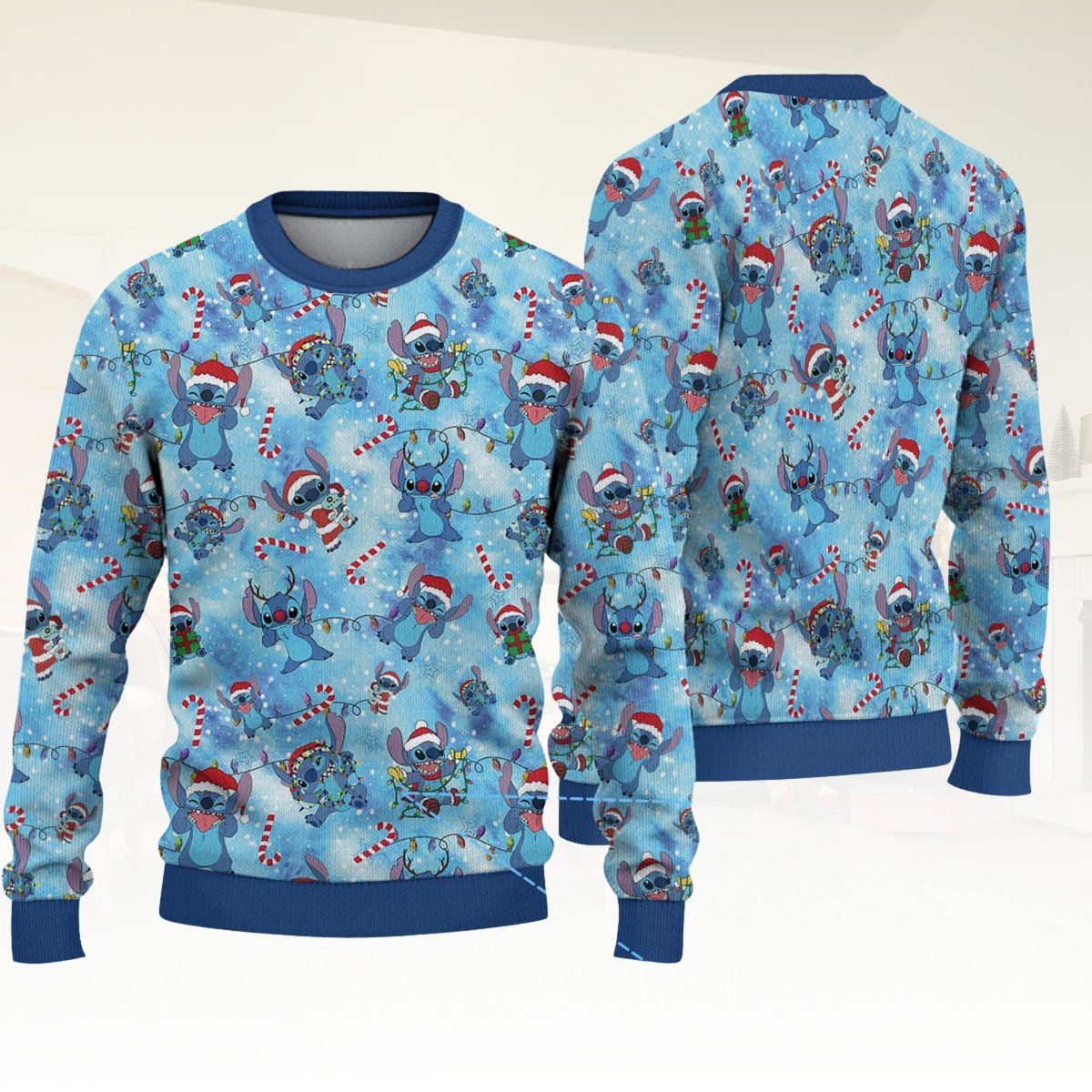 Stitch Blue Christmas Ugly Sweater Cute Cartoon Holiday Knit Jumper