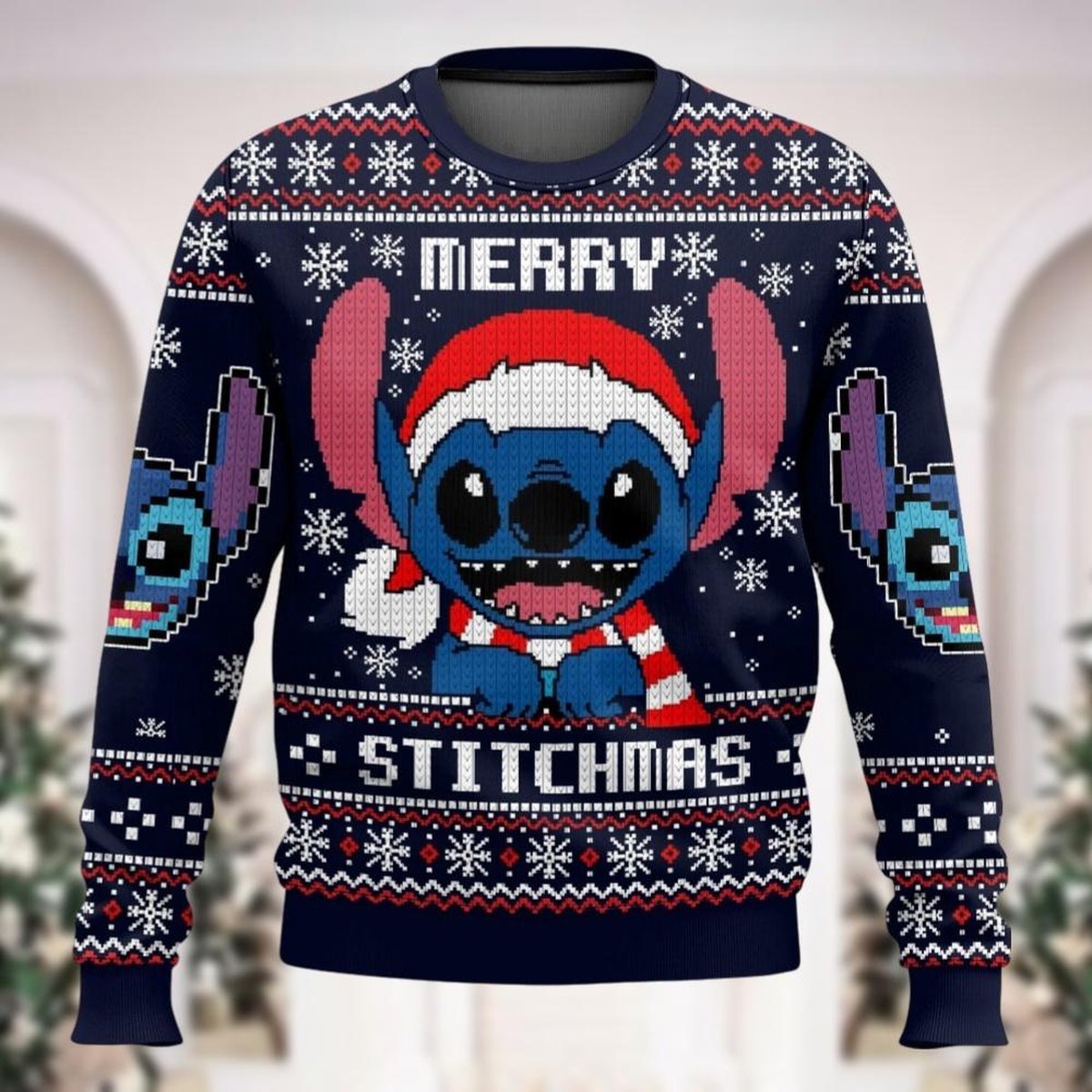 Stitch Merry Stitchmas Blue Ugly Sweater Funny Cartoon Holiday Knit Jumper