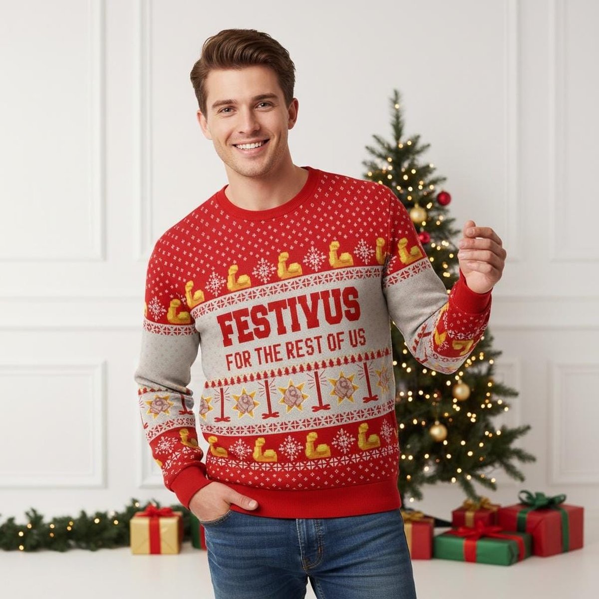 Festivus For The Rest Of Us Seinfeld Ugly Christmas Sweater Red Holiday Knit Pullover Gift