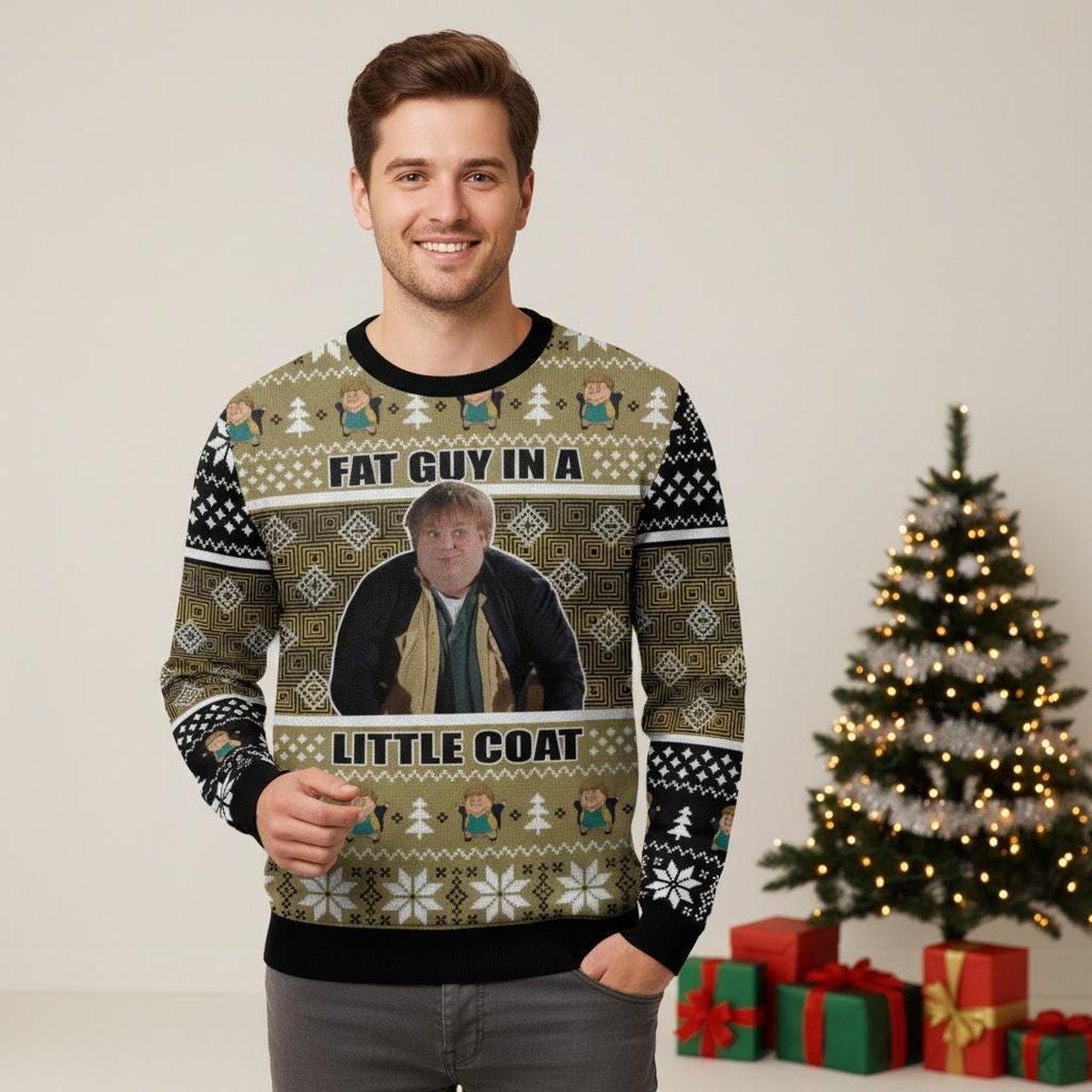 $40.99Fat Guy in a Little Coat Brown Ugly Christmas Sweater Funny Movie Quote Holiday Knit Jumper Get ready for the season of joy! As the temperatures drop and the holidays approach, it’s time to bring back the timeless winter favorite – the Ugly Christmas Sweater. Whether it’s a family reunion, office party, or cozy night […]