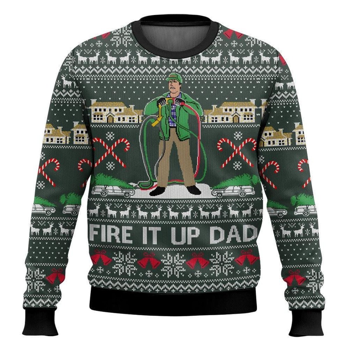 Fire It Up Dad Green Christmas Vacation Ugly Sweater Funny Movie Quote Holiday Knit Jumper