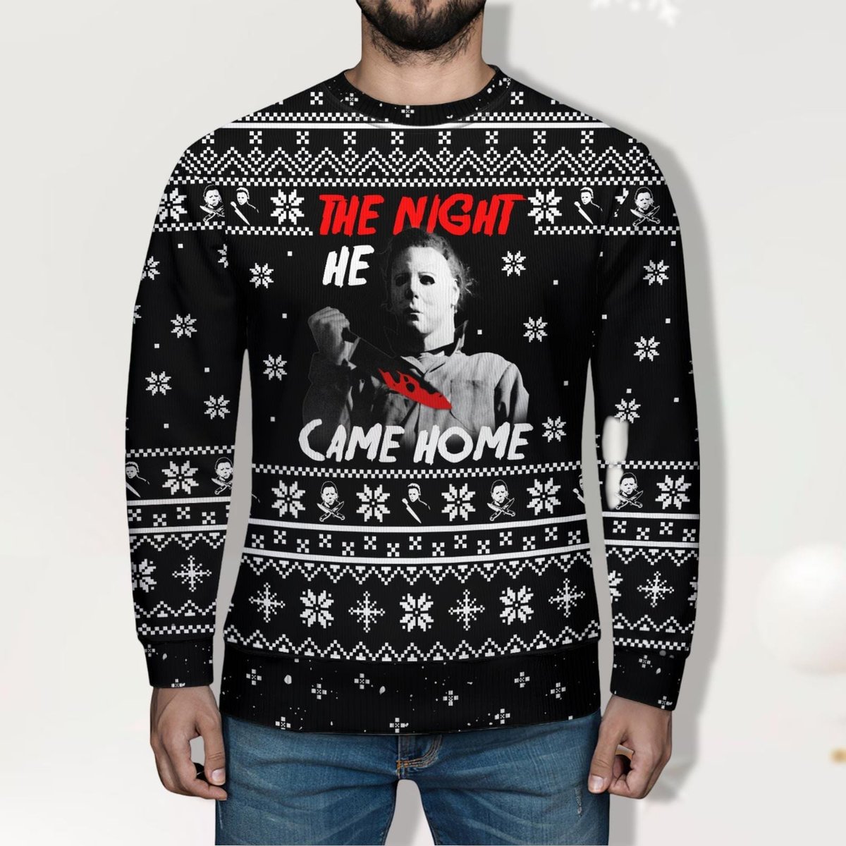 Michael Myers The Night He Came Home Halloween Christmas Ugly Sweater Black Jumper