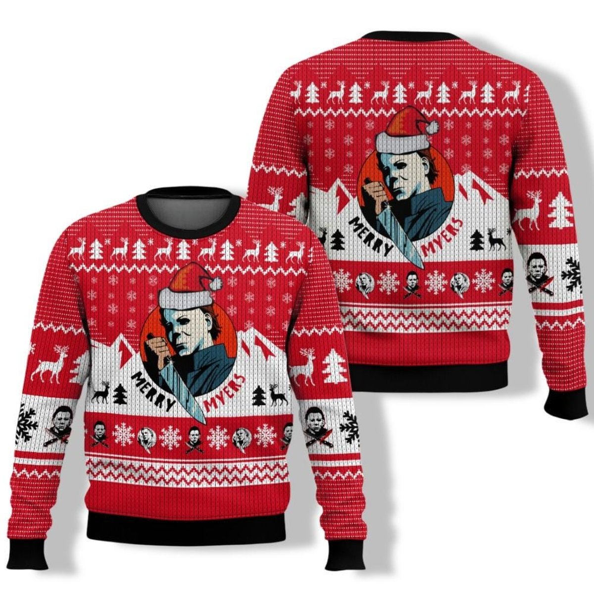 Michael Myers Merry Scary Christmas Horror Movie Ugly Sweater Red White Jumper