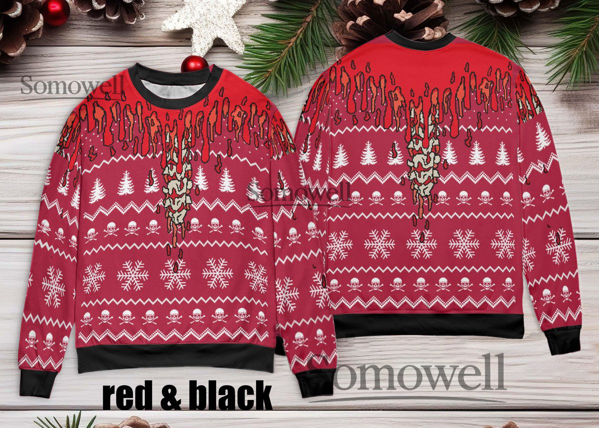 Bloody Christmas Red Ugly Sweater Horror Anime Style Holiday Knit Jumper
