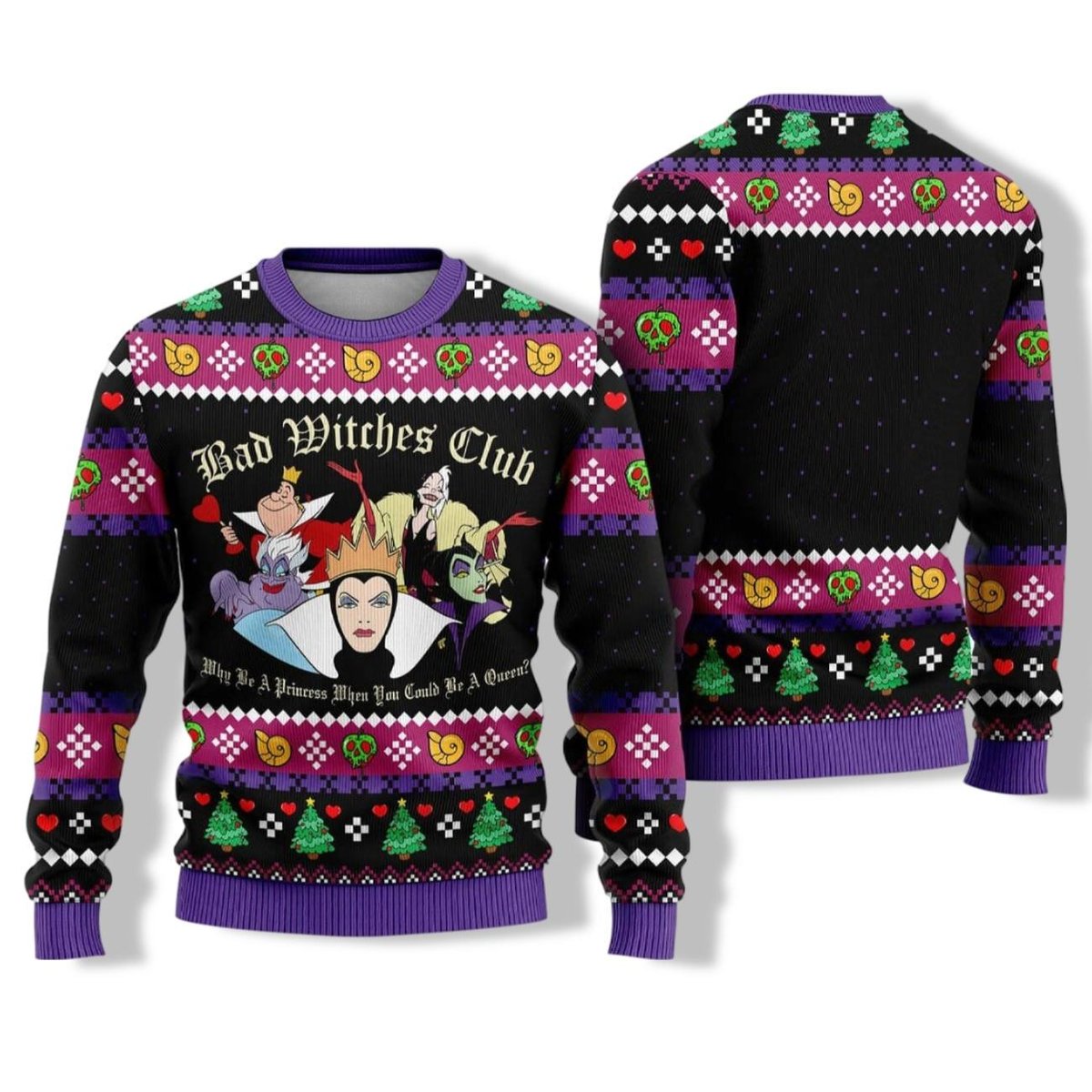 Disney Villains Bad Witches Club Ugly Christmas Sweater Black Purple Jumper