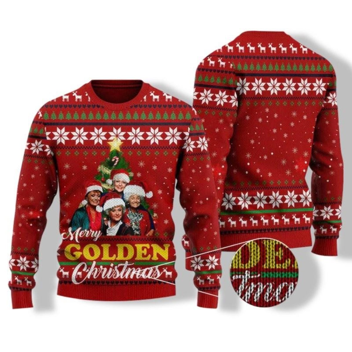 Golden Girls Merry Golden Christmas Ugly Sweater Red Funny TV Show Jumper