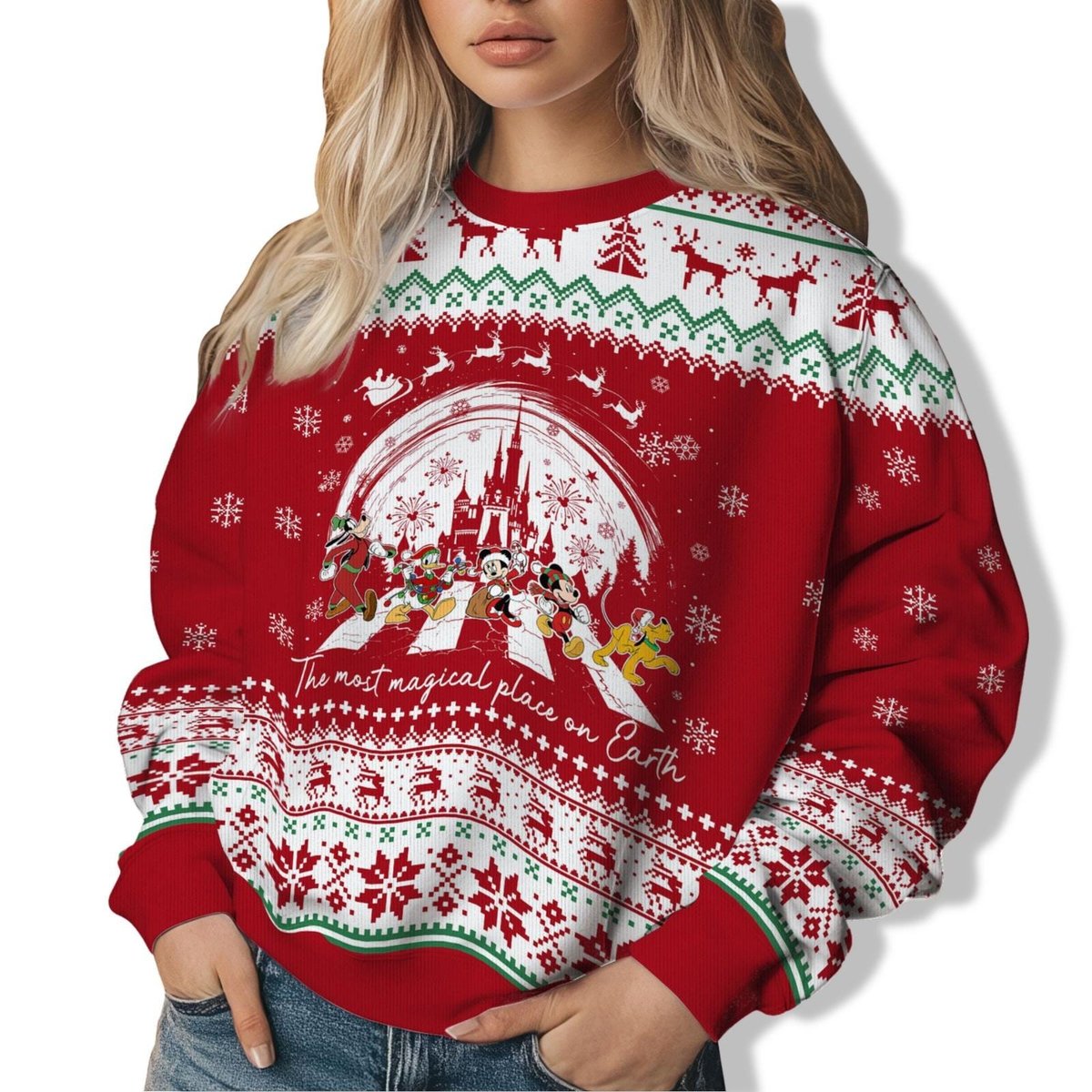 Disney Mickey and Friends Christmas Castle Ugly Sweater Red White Green Jumper