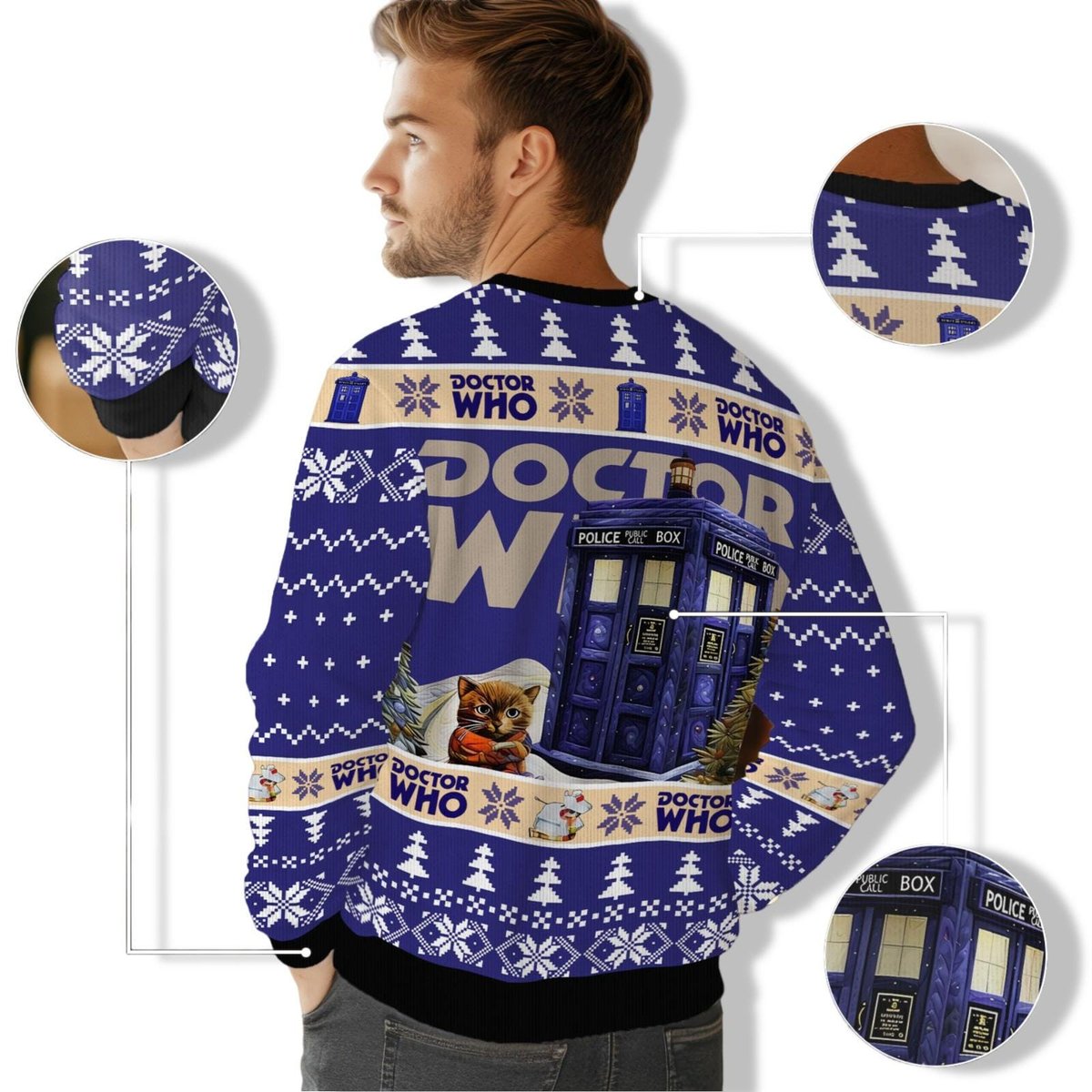 Doctor Who Police Box Christmas Ugly Sweater Blue Pattern Holiday Jumper