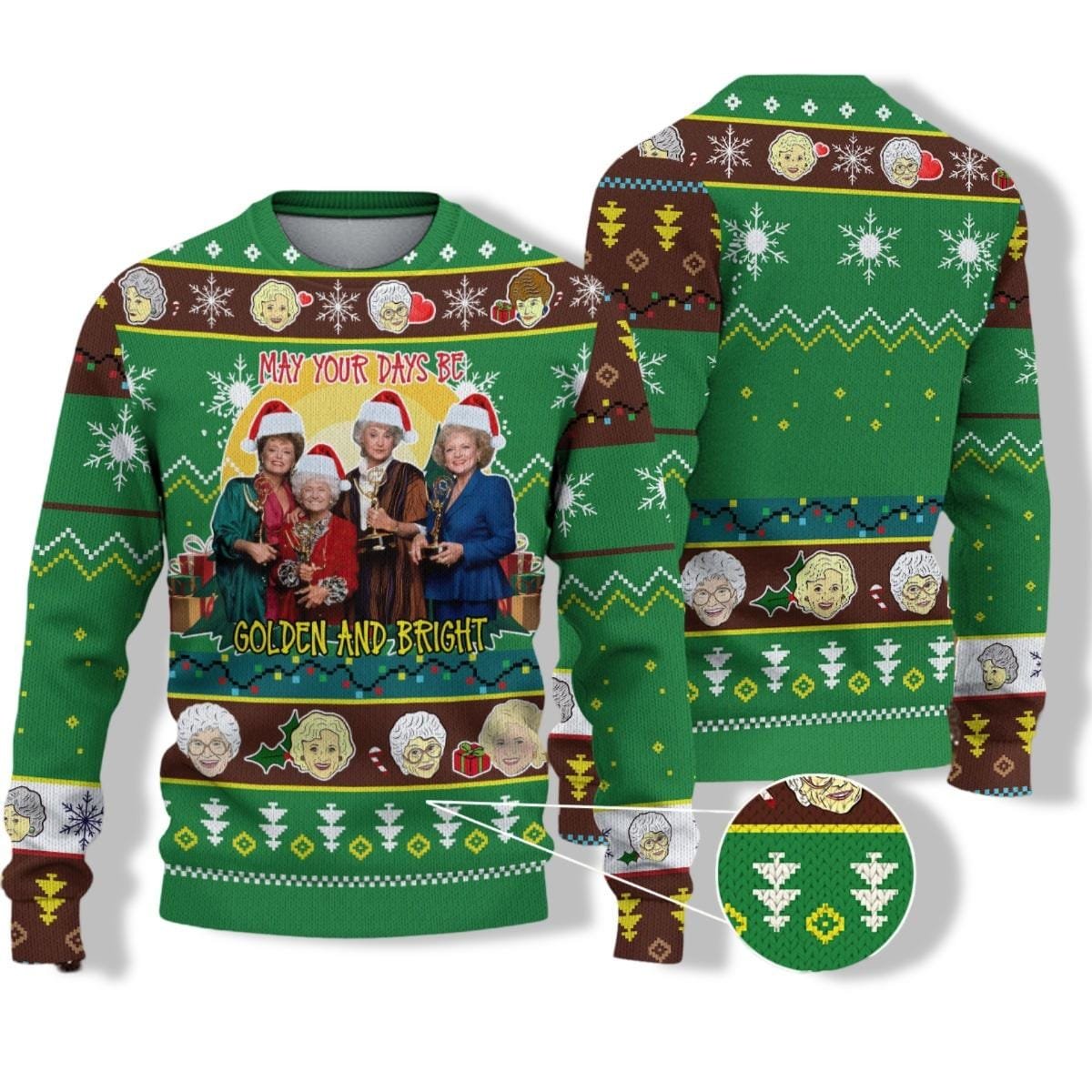 Golden Girls May Your Days Be Golden and Bright Funny Christmas Ugly Sweater Green Jumper