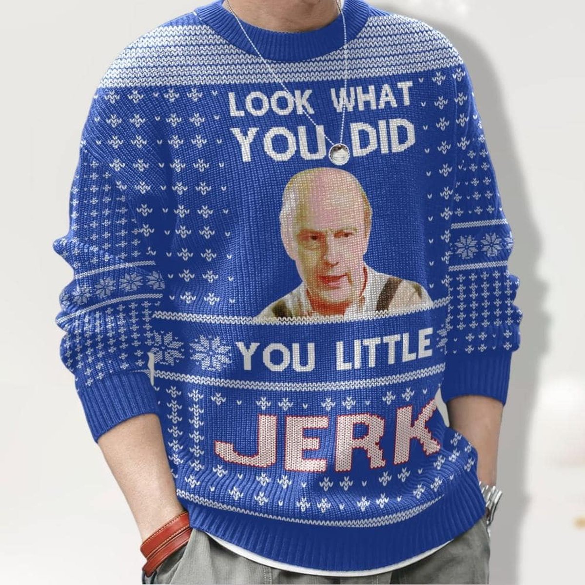 Home Alone Look What You Did You Little Jerk Funny Quote Ugly Christmas Sweater Blue Jumper