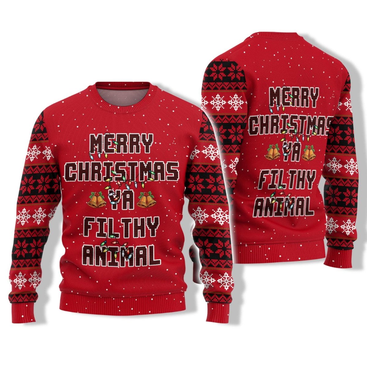 Home Alone Merry Christmas Ya Filthy Animal Red Pattern Ugly Sweater Holiday Jumper