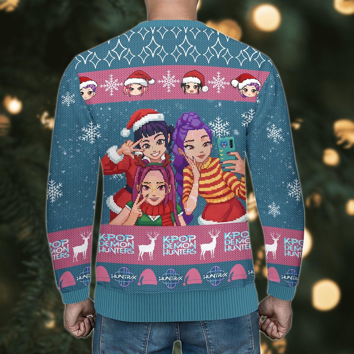 KPOP Demon Hunters Anime Christmas Ugly Sweater Girls Cartoon Holiday Jumper