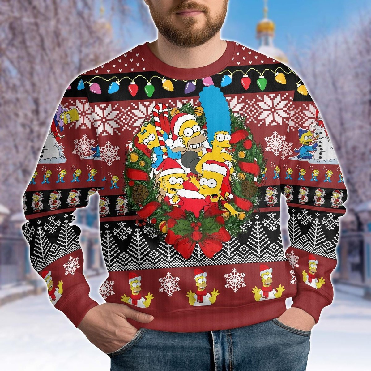 The Simpsons Ugly Christmas Sweater Funny Cartoon Family Holiday Gift