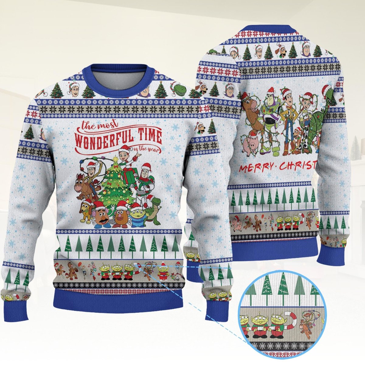 Toy Story The Most Wonderful Time Blue Family Matching Ugly Christmas Sweater Holiday Knit Gift