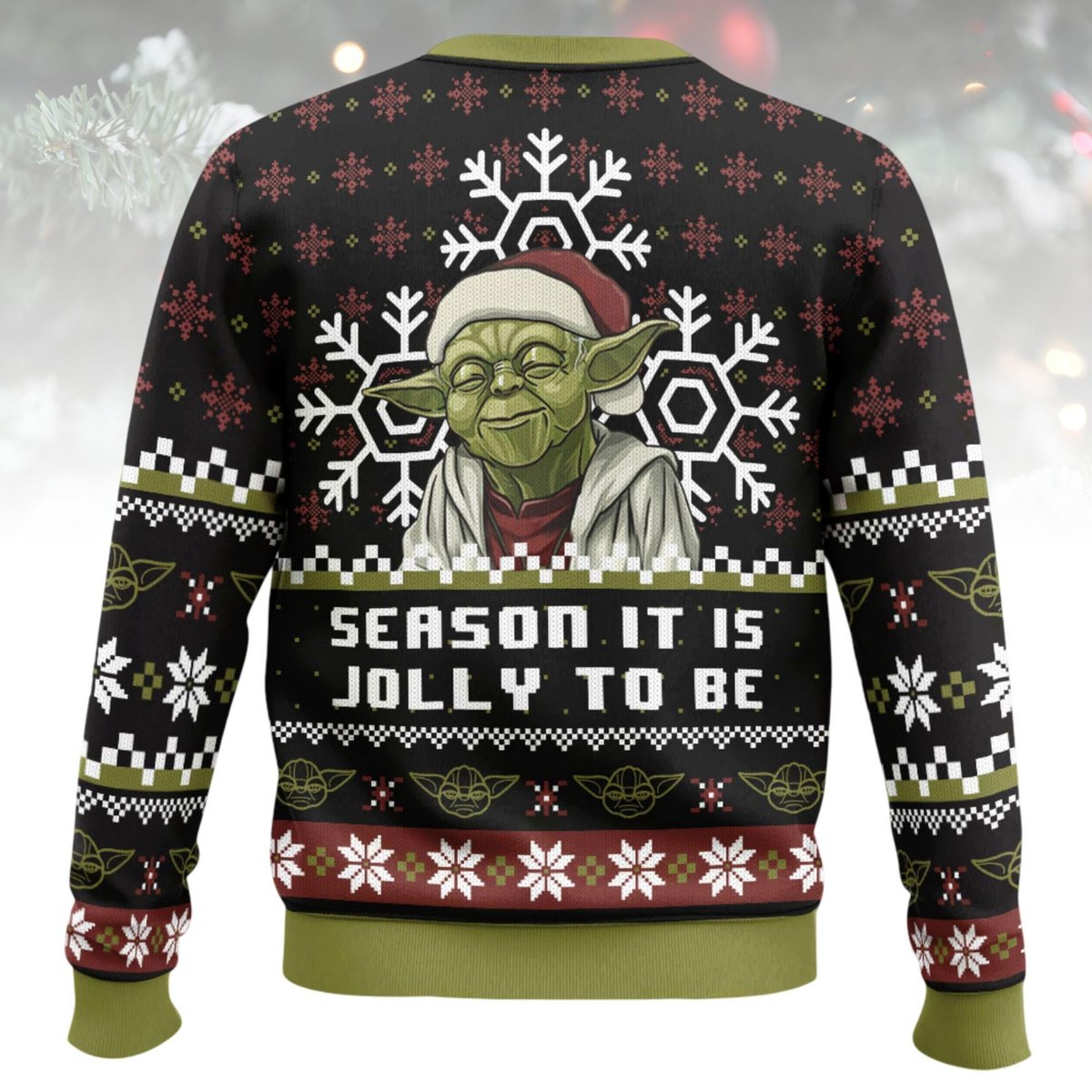 Yoda Season It Is Jolly To Be Black Green Ugly Christmas Sweater Holiday Knit Gift