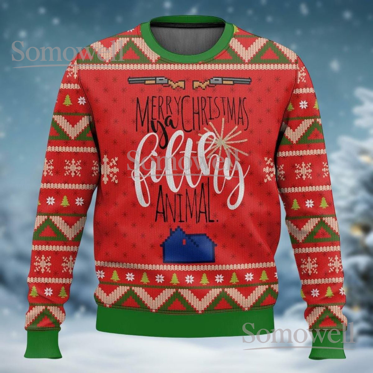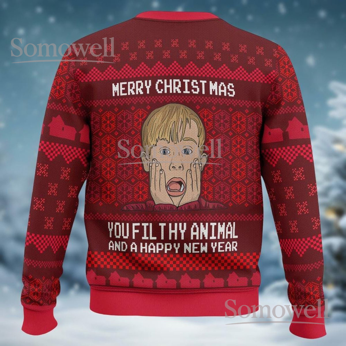 Merry Christmas Ya Filthy Animal Red Ugly Christmas Sweater Funny Holiday Movie Gift
