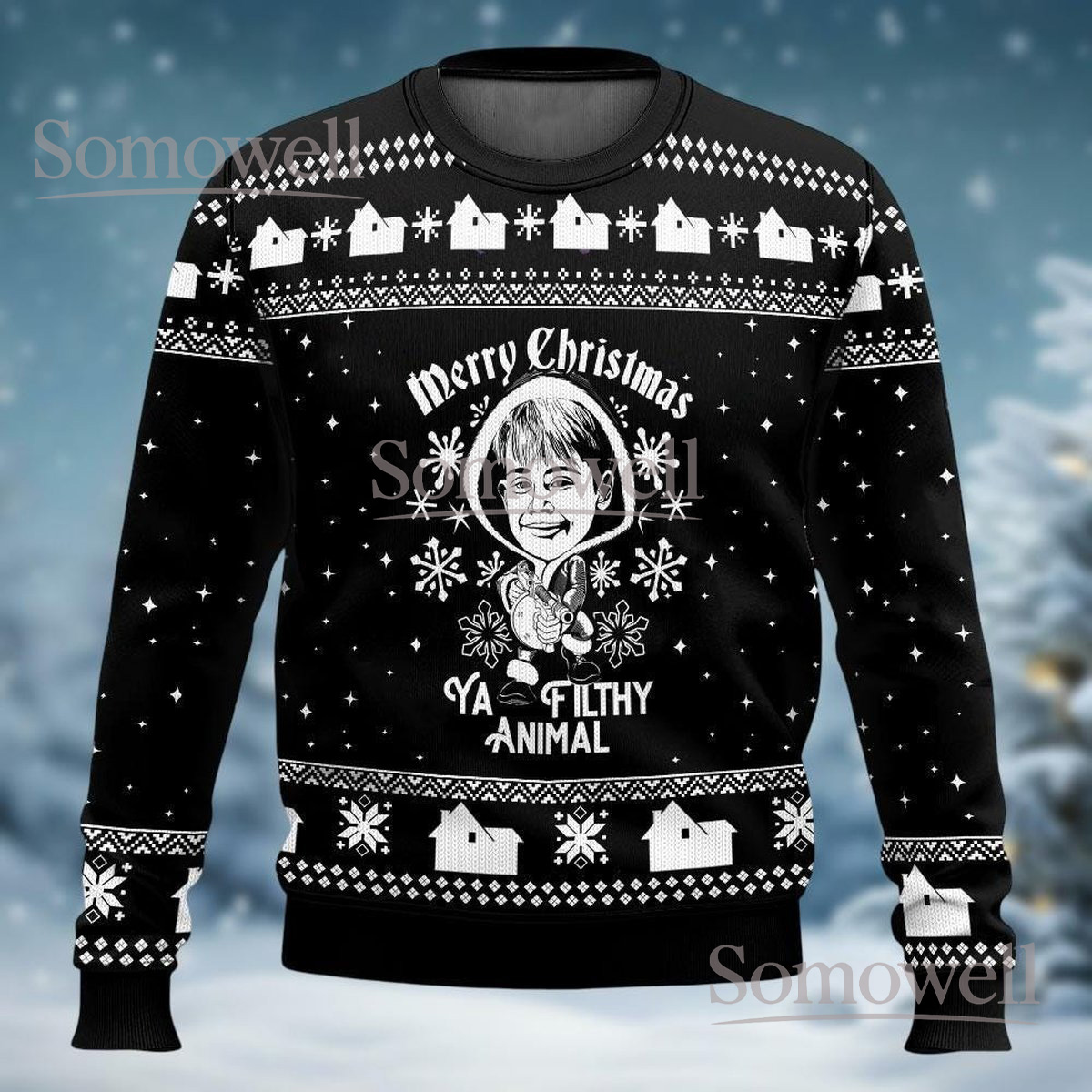 Merry Christmas Ya Filthy Animal Black Ugly Christmas Sweater Funny Home Alone Gift
