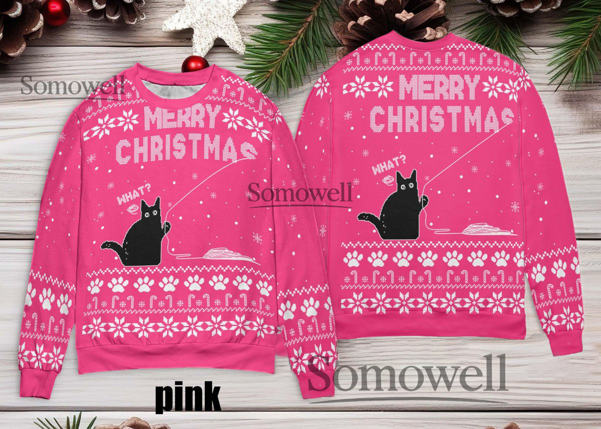 Meowy Christmas Funny Cat Ugly Christmas Sweater Black Red Pet Lovers Edition Multi Color Edition