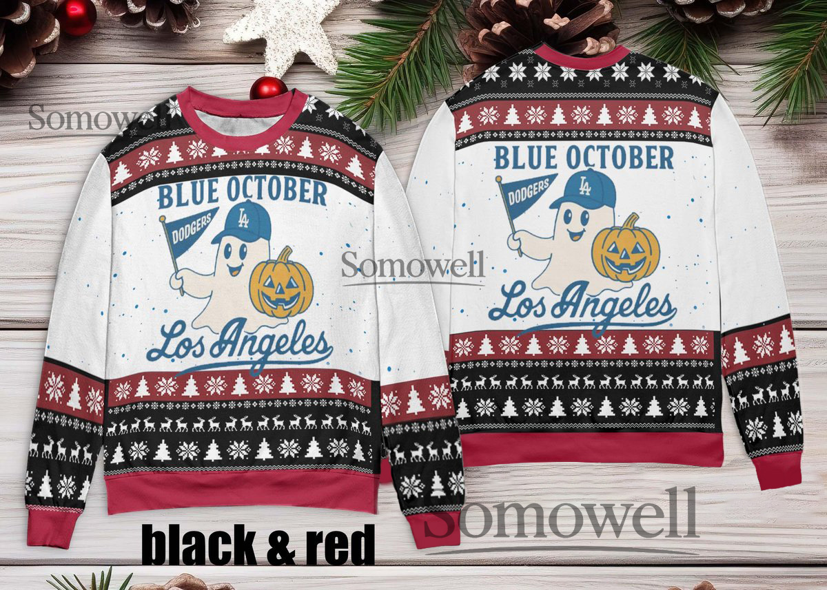 Los Angeles Dodgers Blue October Ghost Ugly Christmas Sweater Halloween Baseball Fans Edition Multi Color Edition