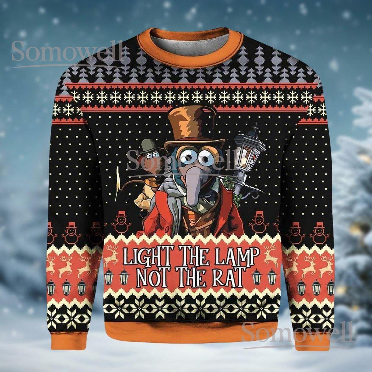 Light The Lamp Not The Rat Muppets Ugly Christmas Sweater Funny Holiday Disney Jumper