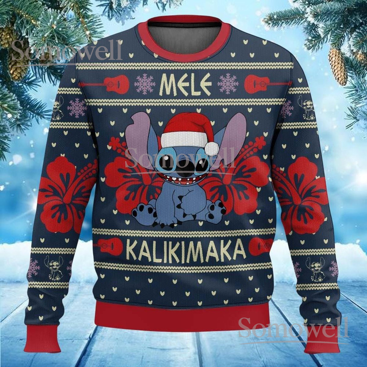 Lilo And Stitch Mele Kalikimaka Christmas Ugly Sweater Funny Disney Holiday Knit Jumper
