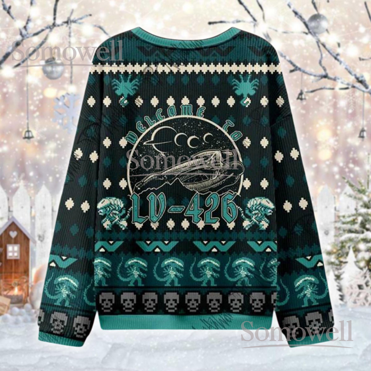 LV-426 Alien Planet Green Christmas Ugly Sweater Sci-Fi Spaceship Horror Knit Jumper
