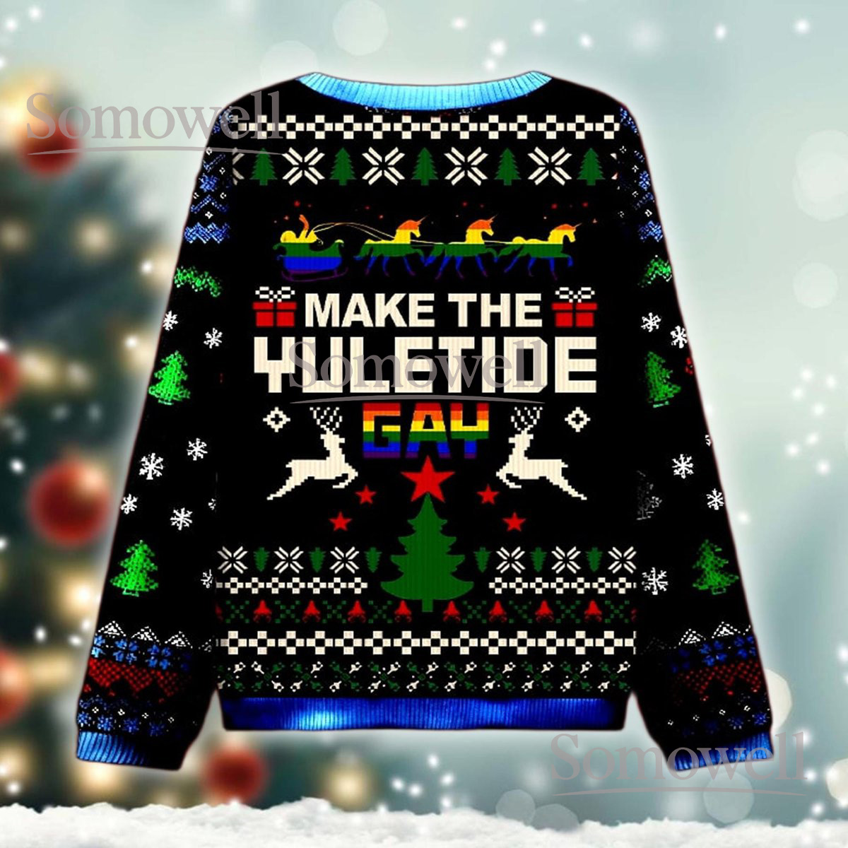 Make The Yuletide Gay Ugly Christmas Sweater Funny Pride Rainbow Holiday Knit Jumper