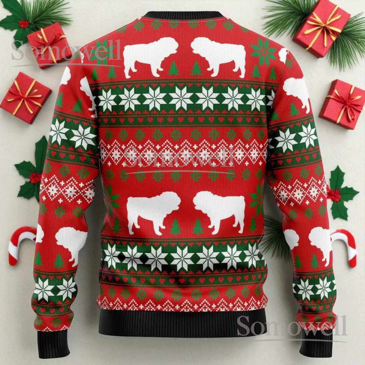Bulldog Dogs Christmas Red Ugly Sweater Funny Pet Holiday Knit Jumper