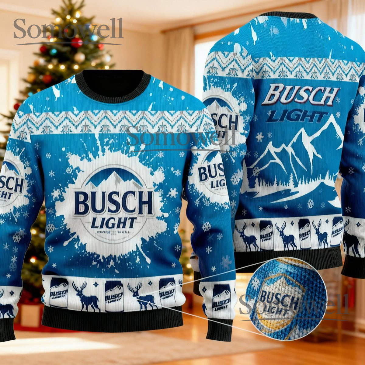 Busch Light Mountain Blue Ugly Christmas Sweater Beer Lovers Winter Holiday Knit Jumper