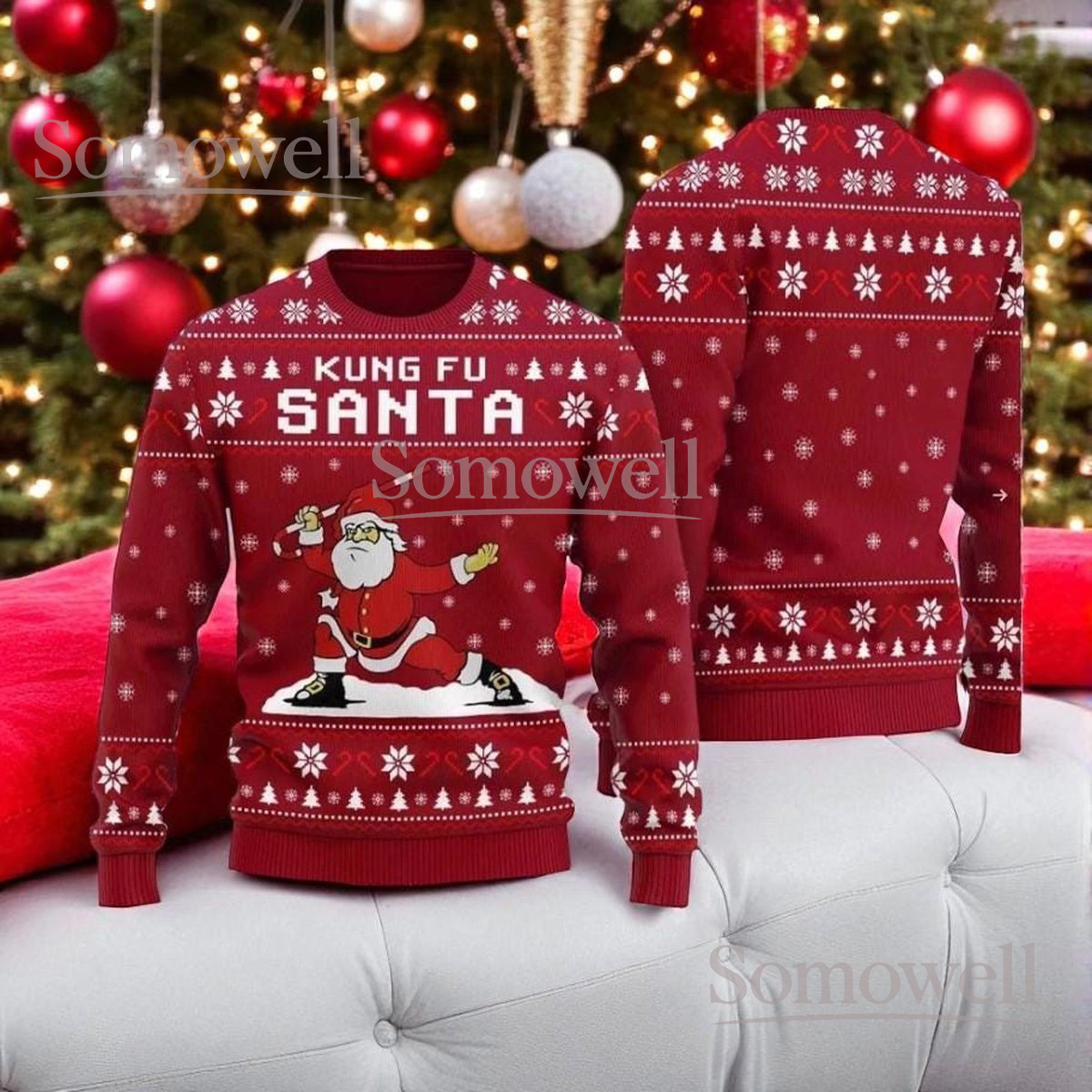 Kung Fu Santa Christmas Red Ugly Sweater Funny Holiday Knit Jumper