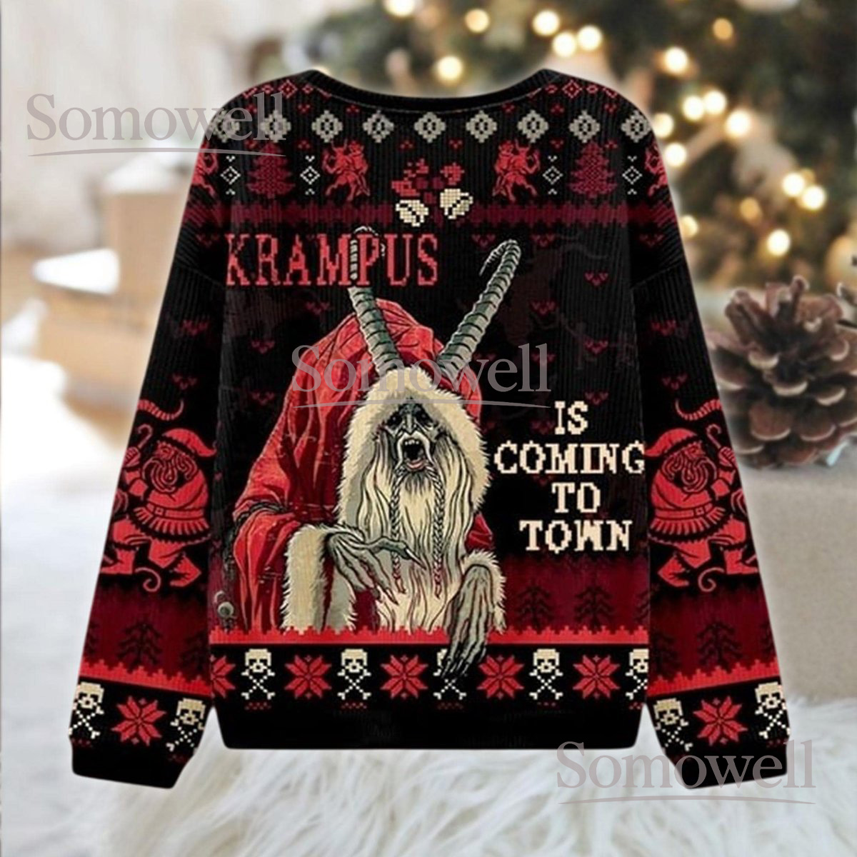 Krampus Is Coming To Town Ugly Christmas Sweater Funny Horror Santa Holiday Gift