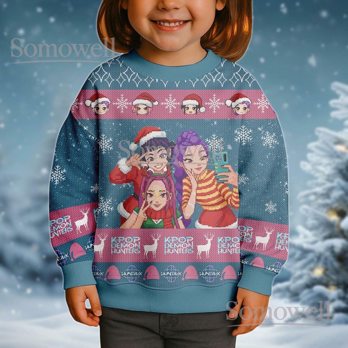Kpop Demon Hunters Rumi Mira Zoey Ugly Christmas Sweater Cute Anime Holiday Gift