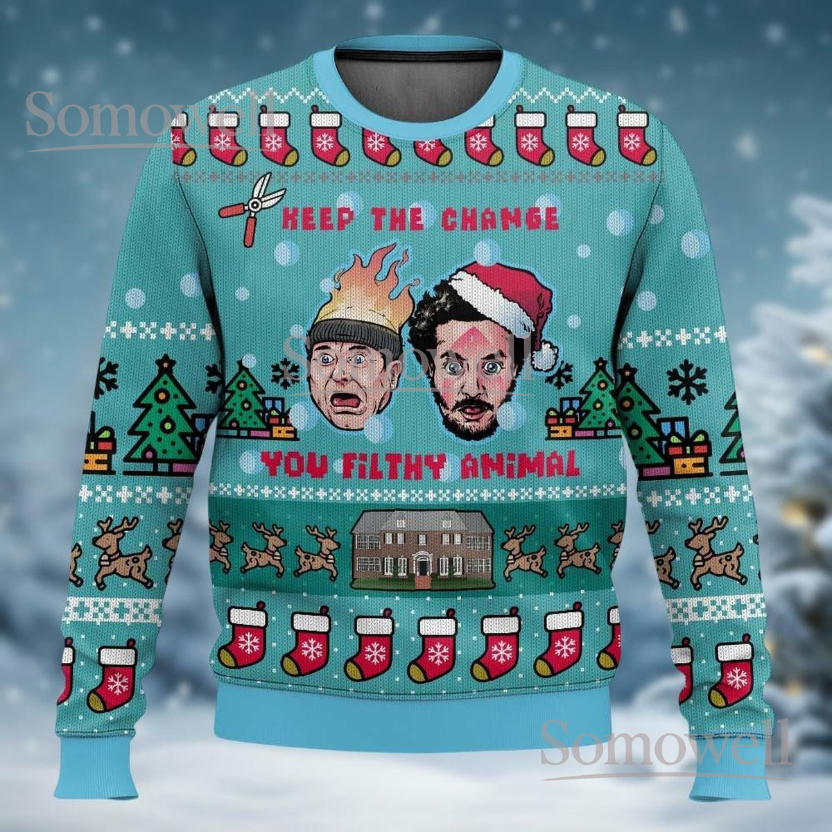 Keep The Change Ya Filthy Animal Ugly Christmas Sweater Funny Home Alone Movie Gift
