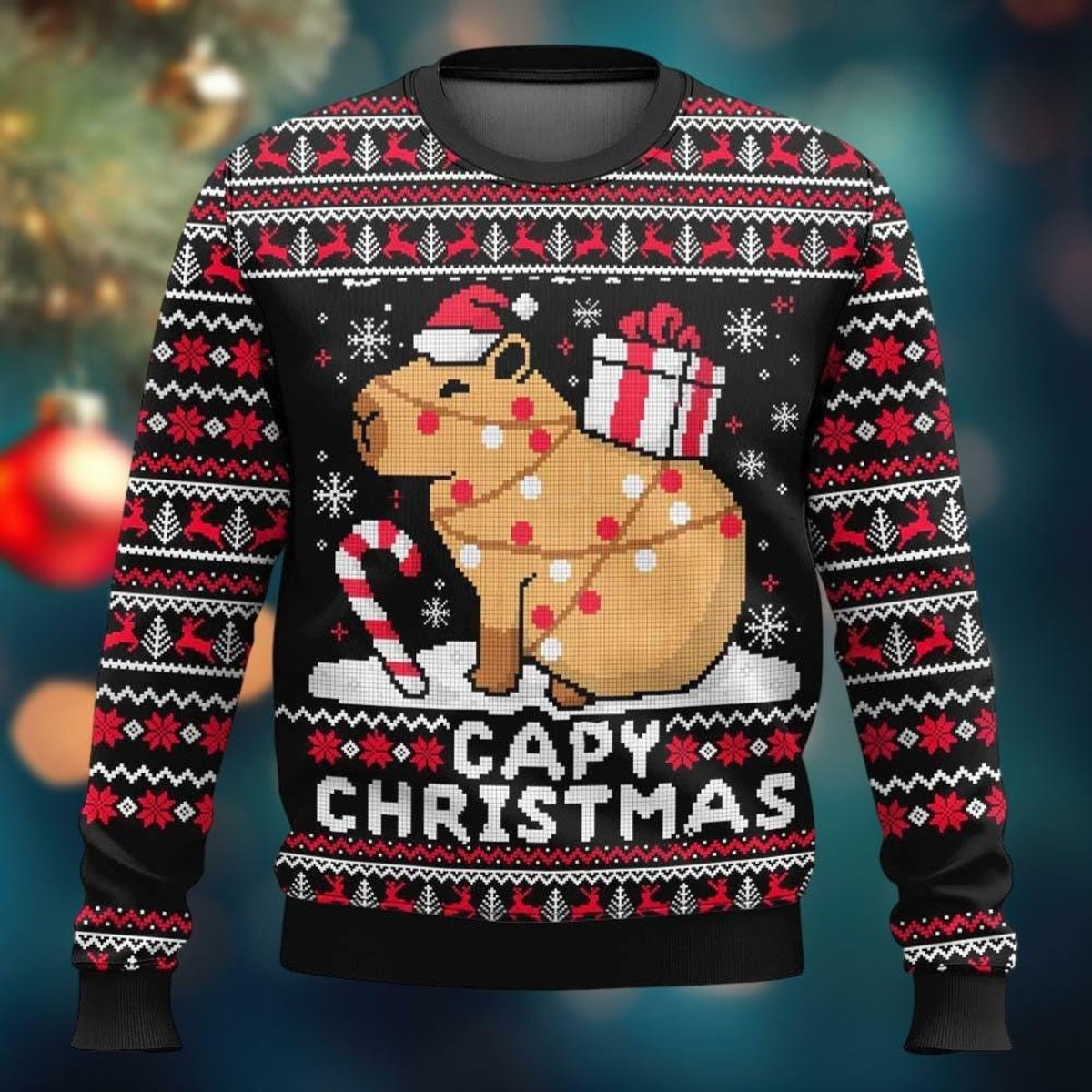 Capybara Black Christmas Ugly Sweater Capy Christmas Gift Candy Cane Knit Jumper