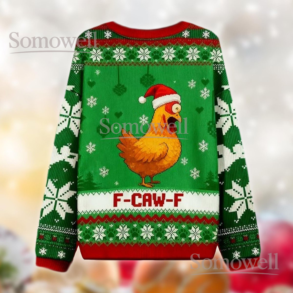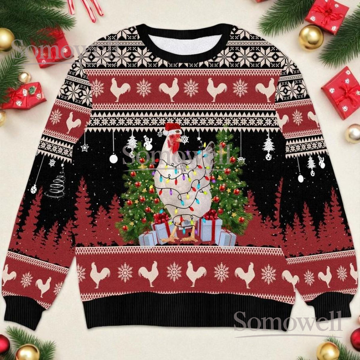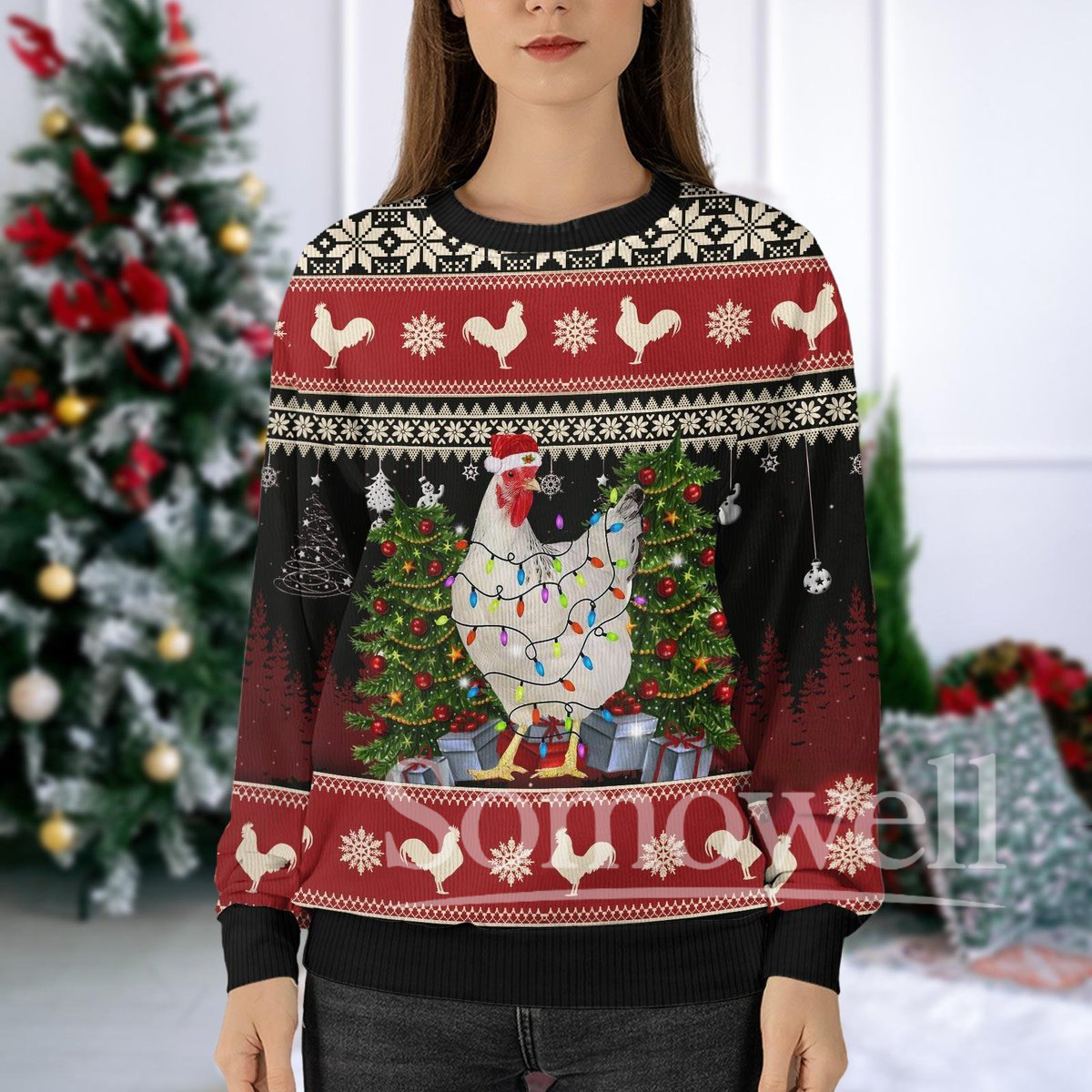 Chicken Ugly Christmas Sweater Funny Farm Hen Holiday Knit Pullover for Animal Lovers