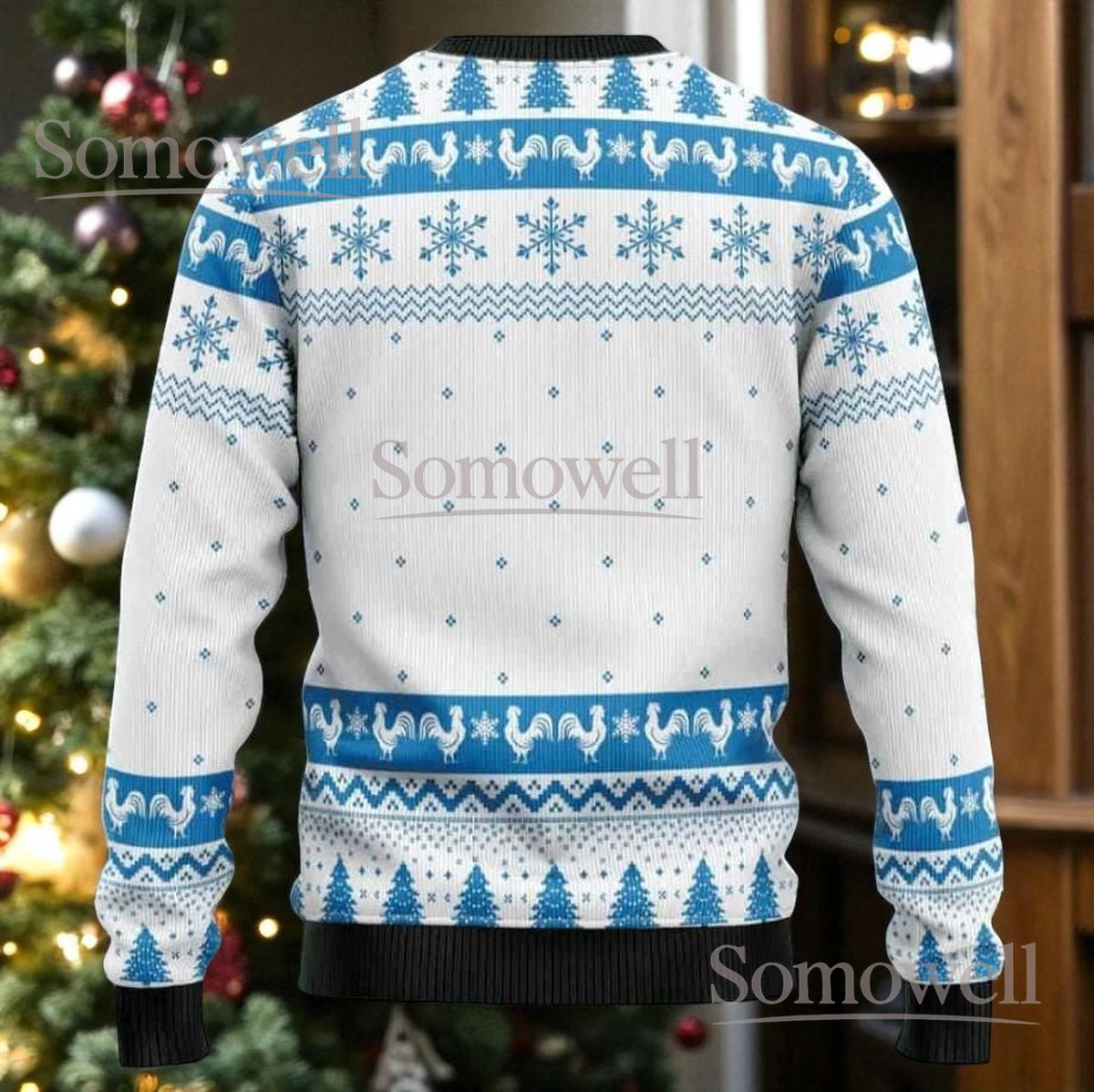 Chicken Life Blue White Christmas Ugly Sweater Farm Animal Funny Holiday Knit Jumper