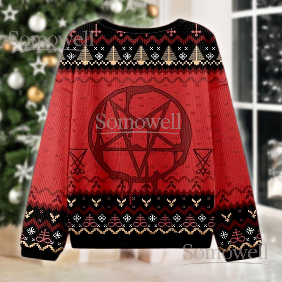 Gingerbread Red Christmas Ugly Sweater Baphomet Holiday Knit Jumper Funny Dark Humor Design