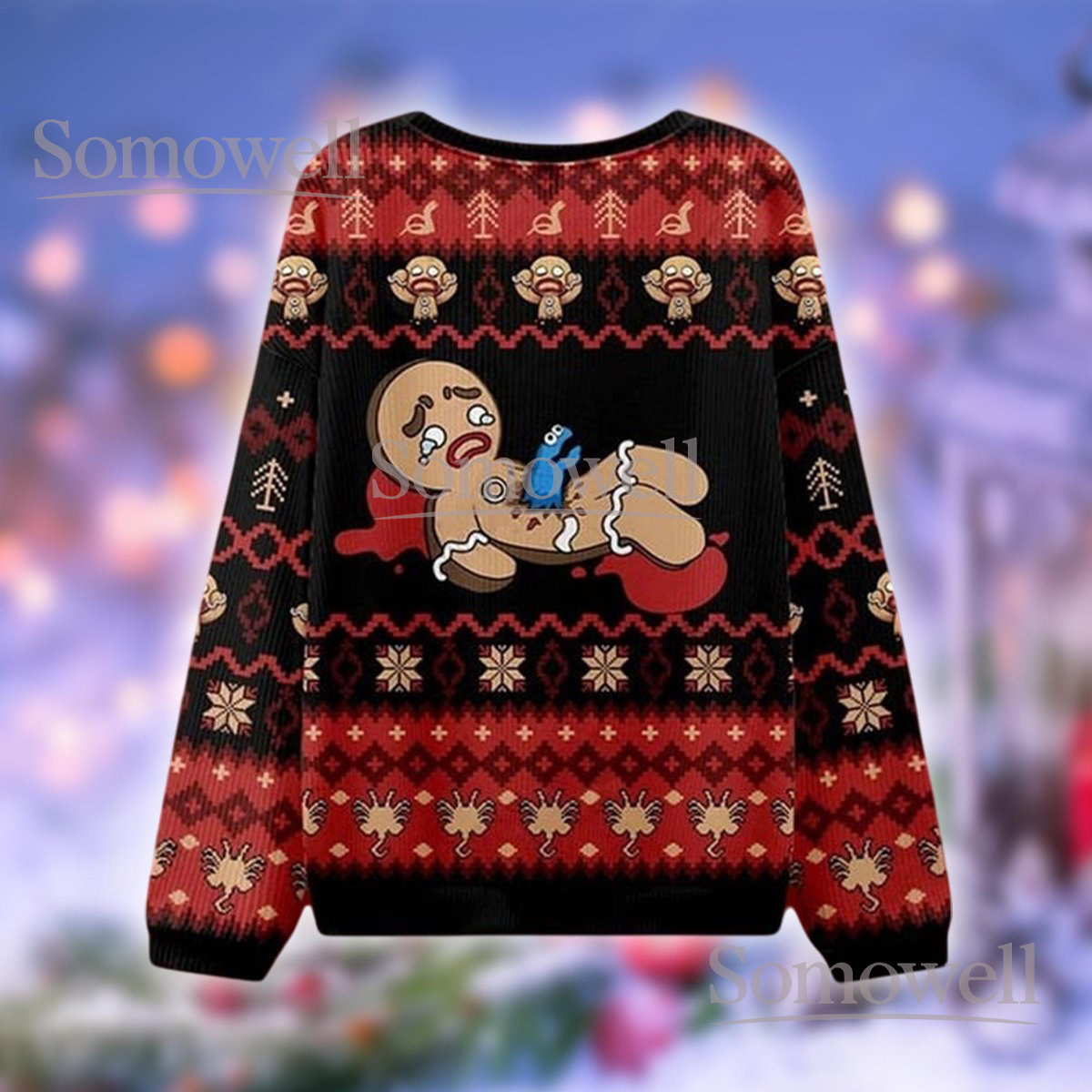 Gingerbread Man Cookie Monster Ugly Christmas Sweater Funny Dark Humor Holiday Gift