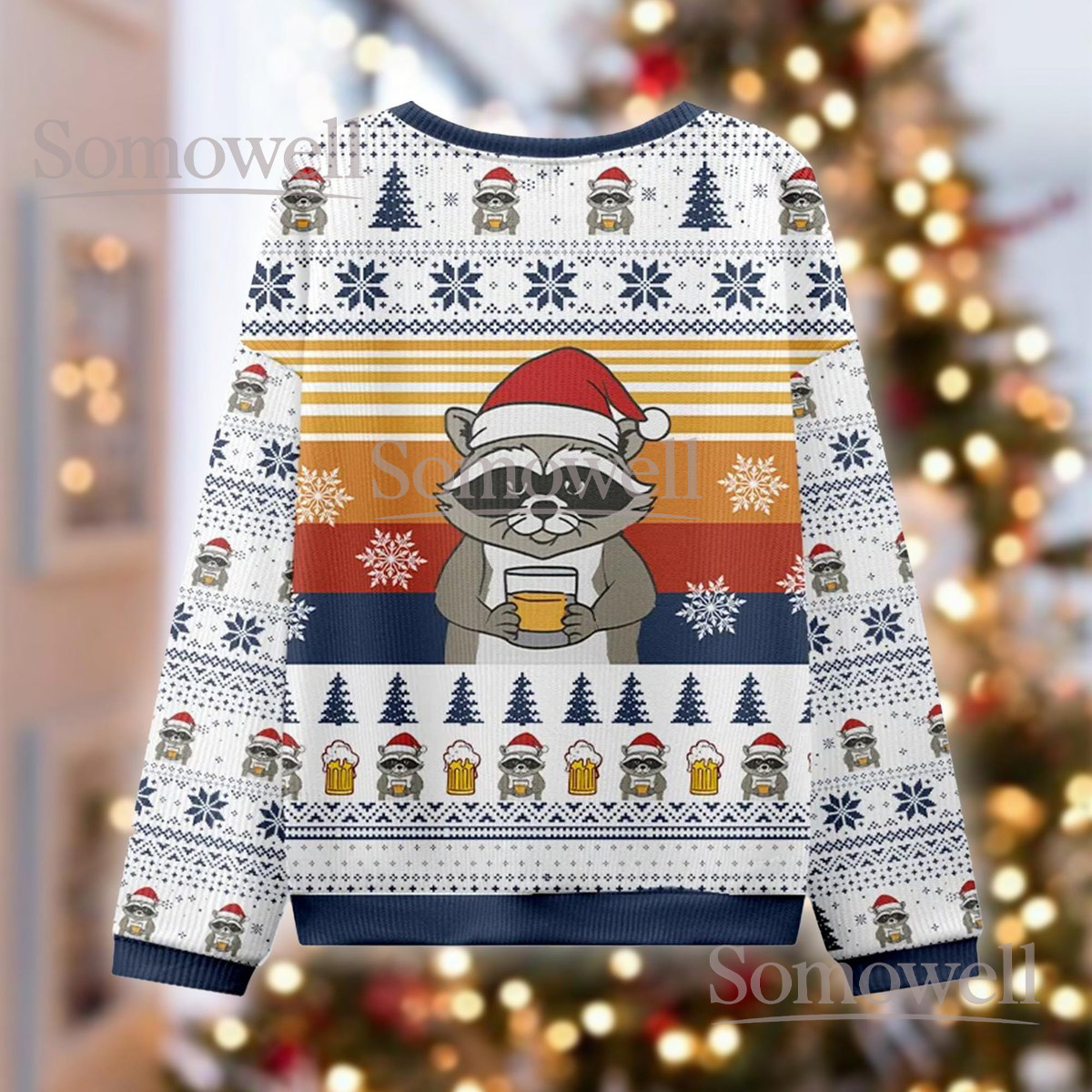 Funny Raccoon Bourbon Ugly Christmas Sweater I Hate People Drink Lovers Holiday Gift