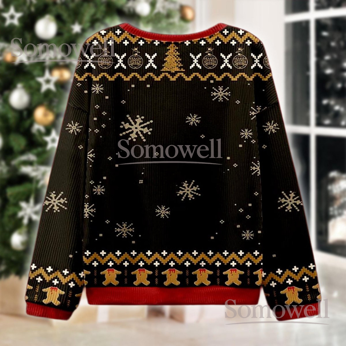 Gingerbread King Black Christmas Ugly Sweater Holiday Knit Jumper Funny Royal Cookie Design